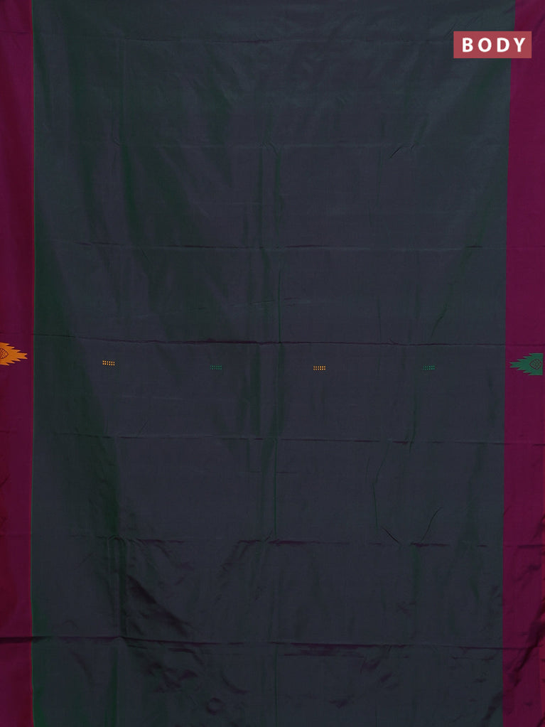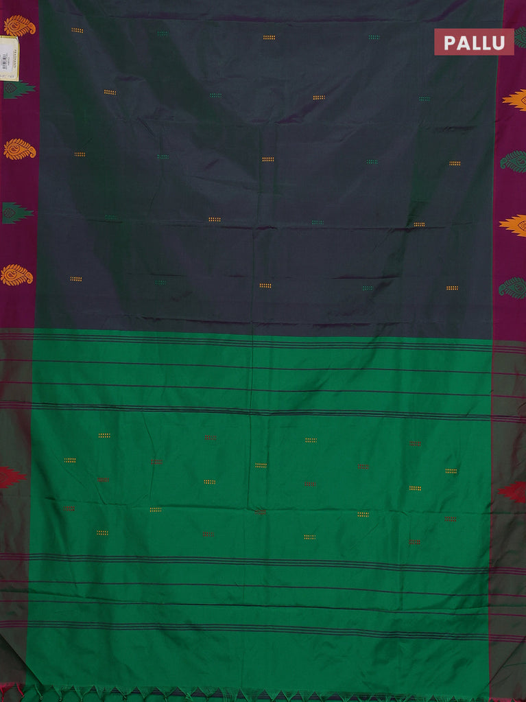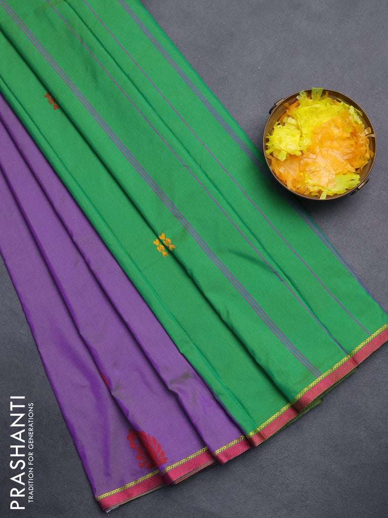 Arani semi silk saree dual shade of greenish violet and green with thread woven buttas and thread woven butta border