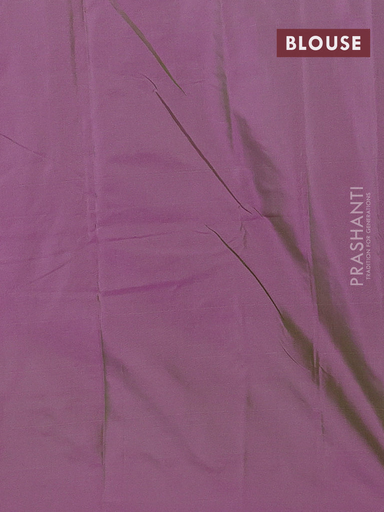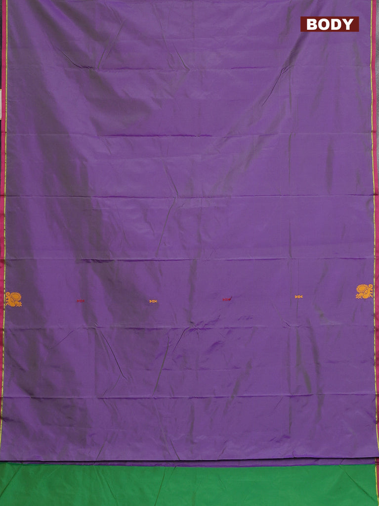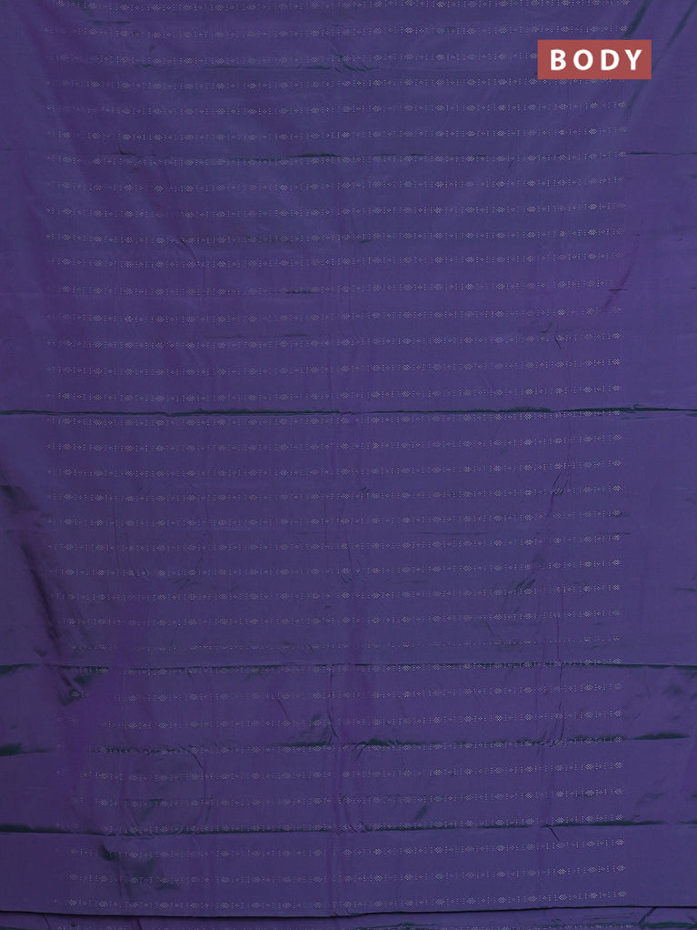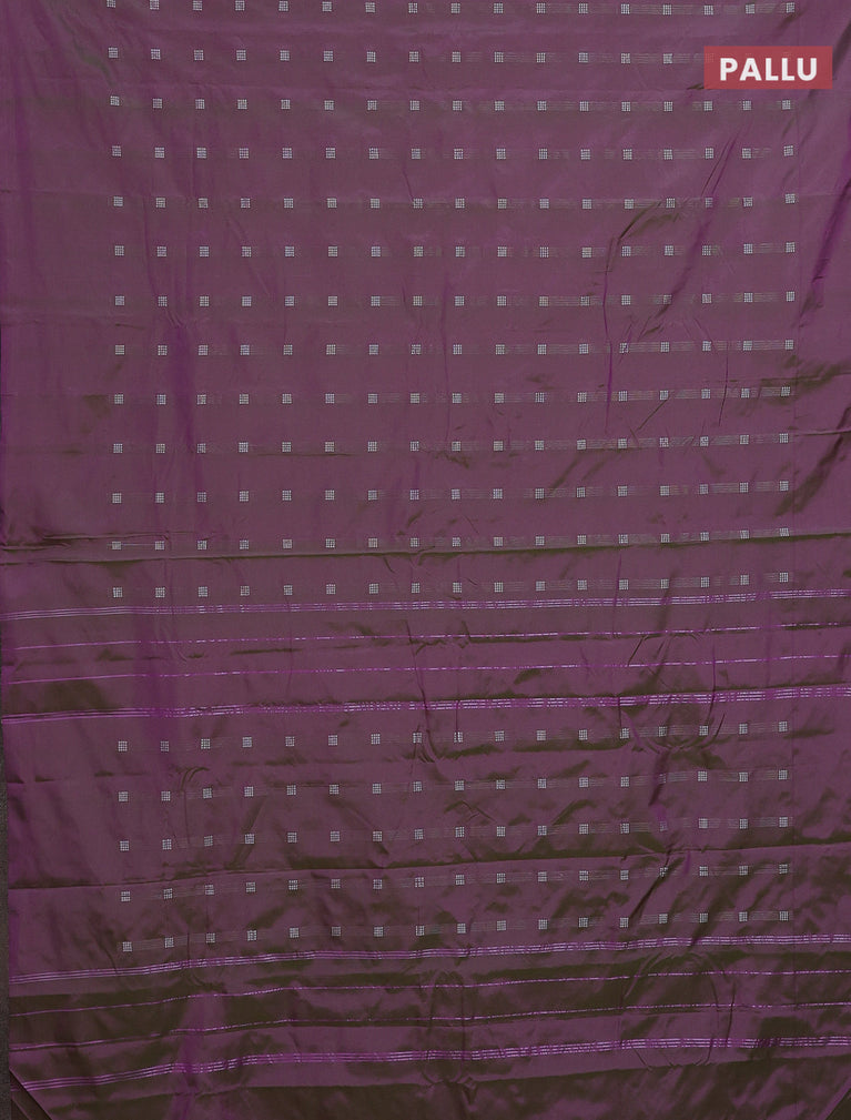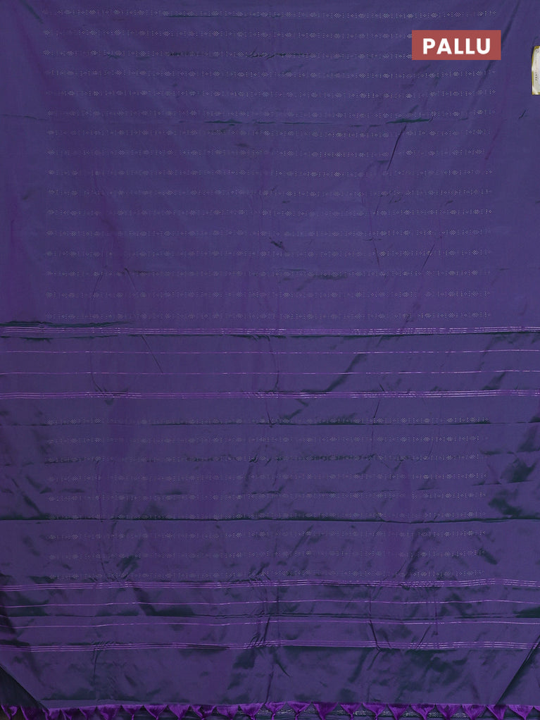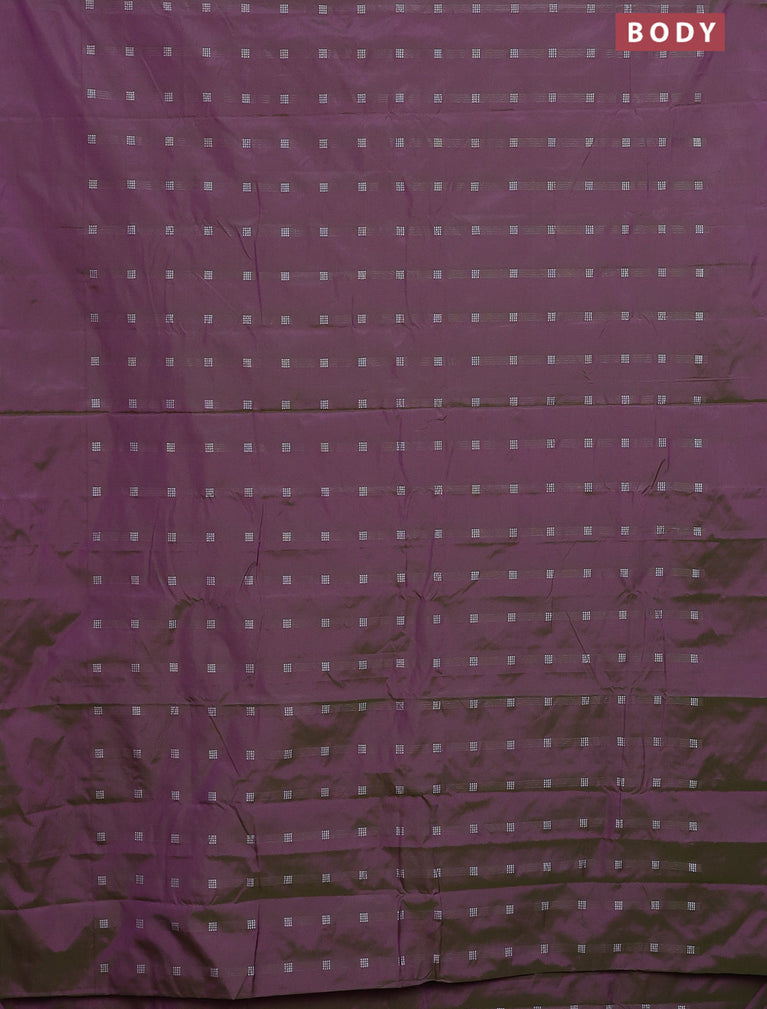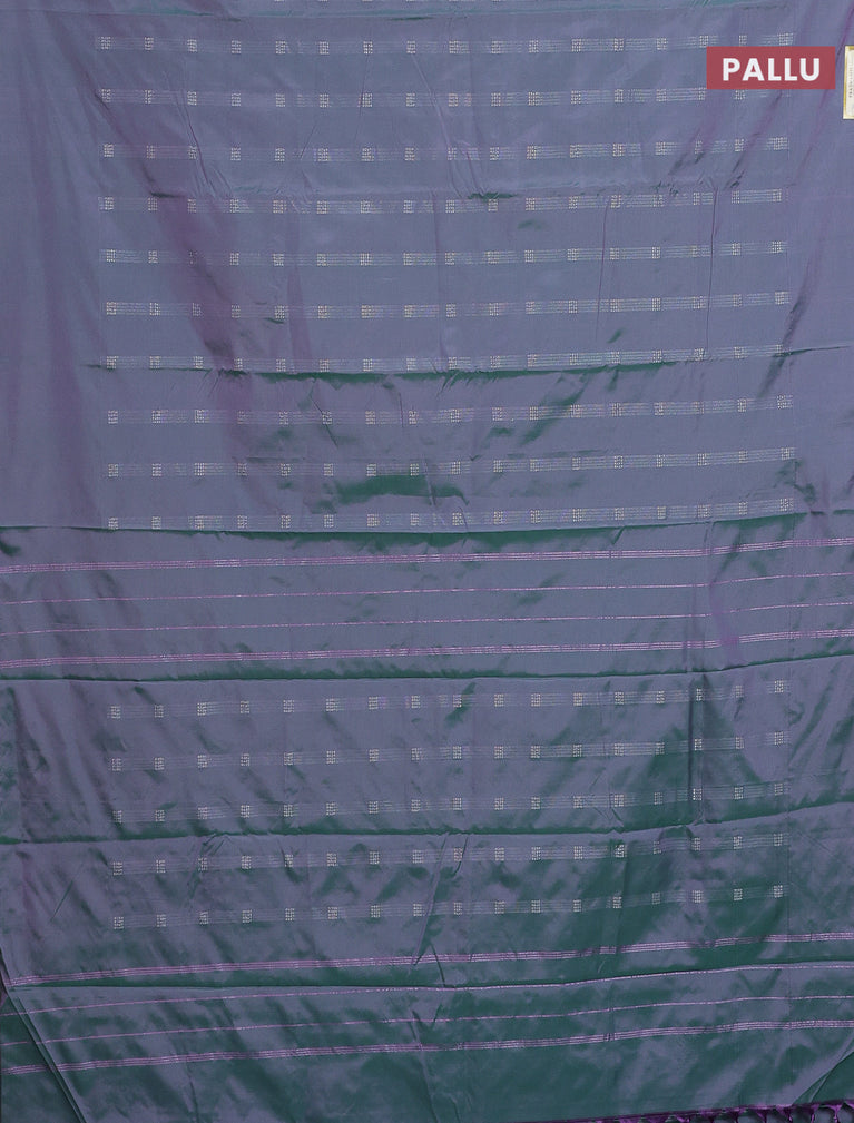 Arani semi silk saree dual shade of greenish purple with silver zari woven buttas in borderless style