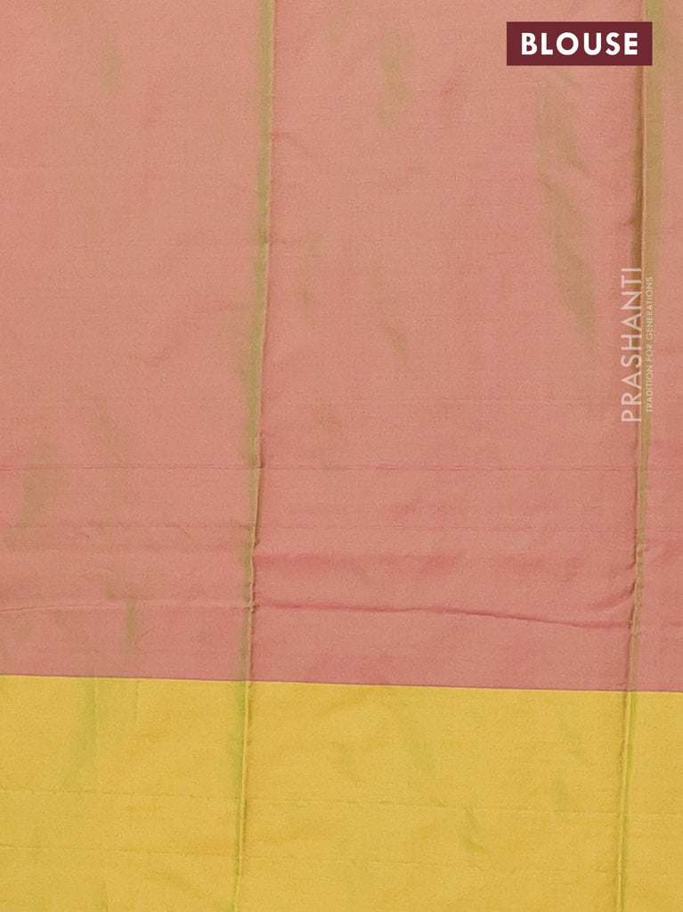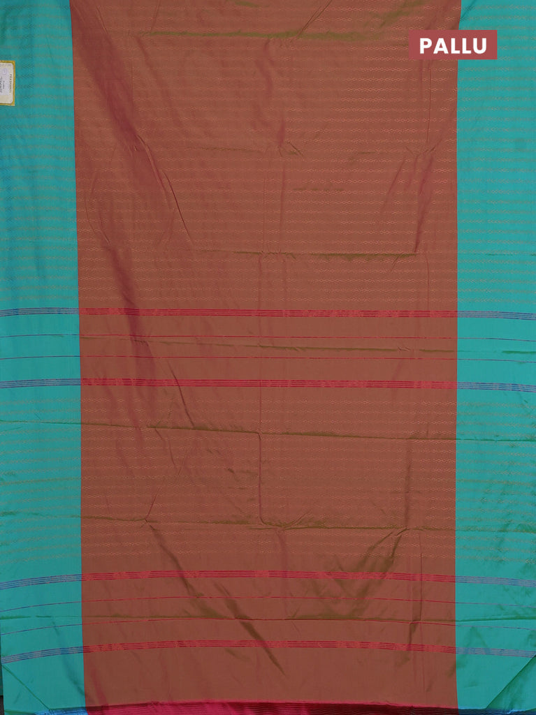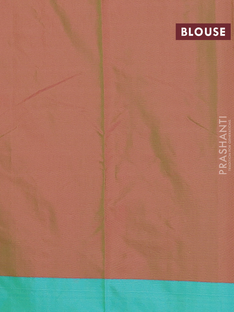 Arani semi silk saree dual shade of greenish pink and teal blue with allover copper zari weaves and copper zari woven border