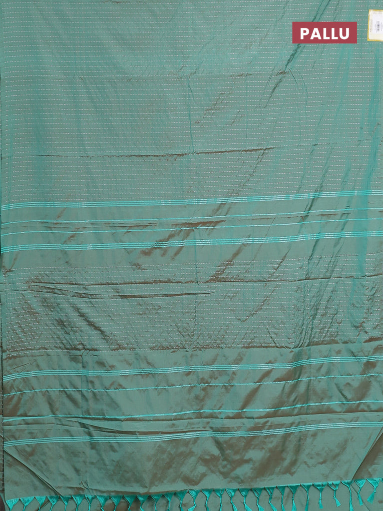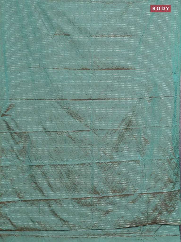 Arani semi silk saree dual shade of green with allover silver zari weaves in borderless style