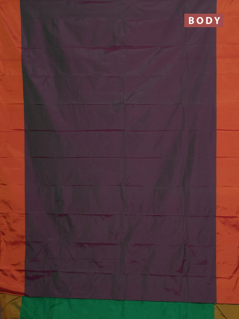 Arani semi silk saree dual shade of greenish purple and sunset orange with zari woven buttas and paisley zari woven butta border