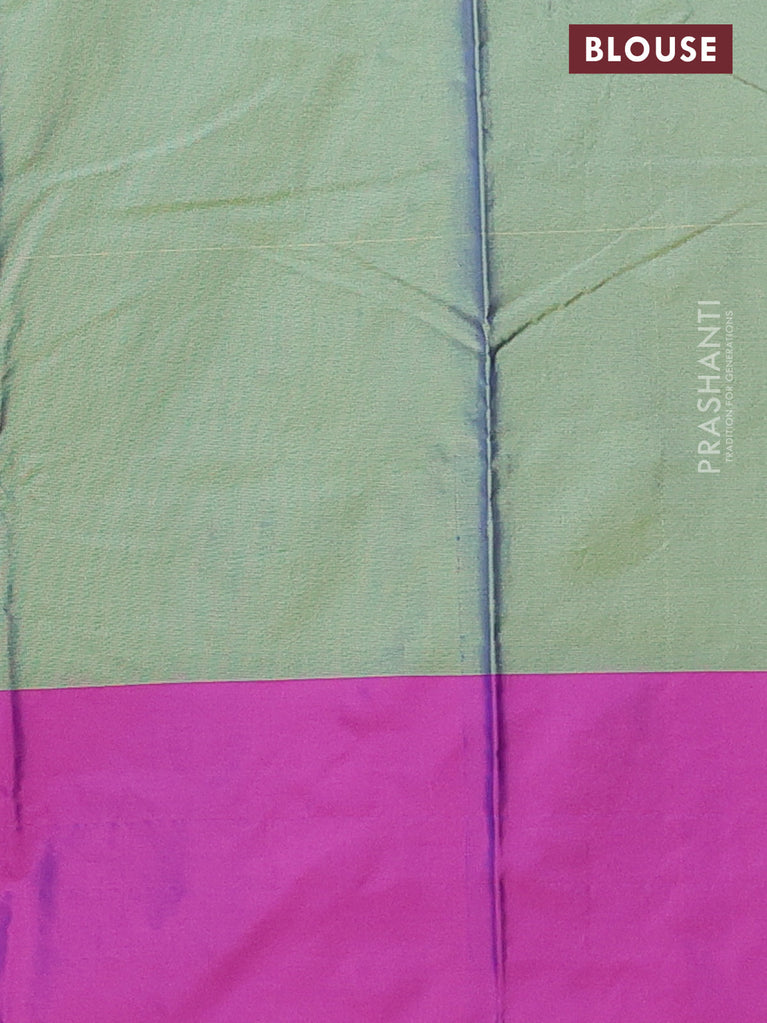Arani semi silk saree dual shade of greenish violet with allover silver zari weaves in borderless style
