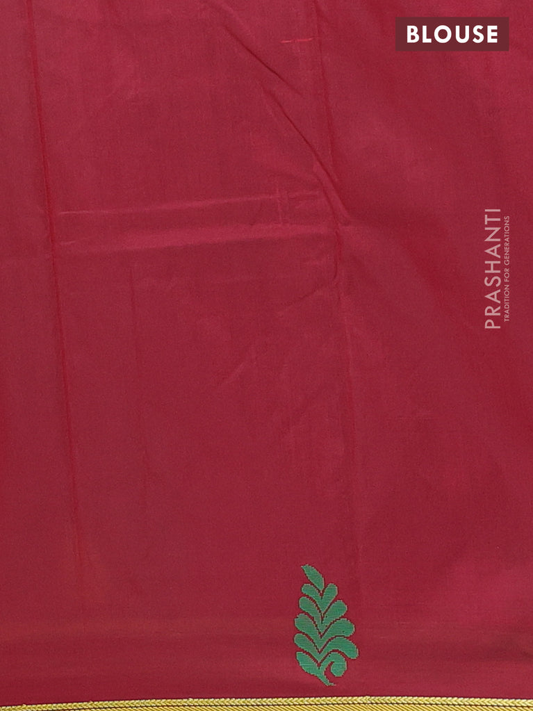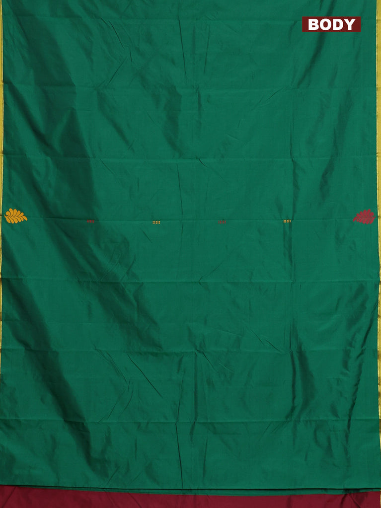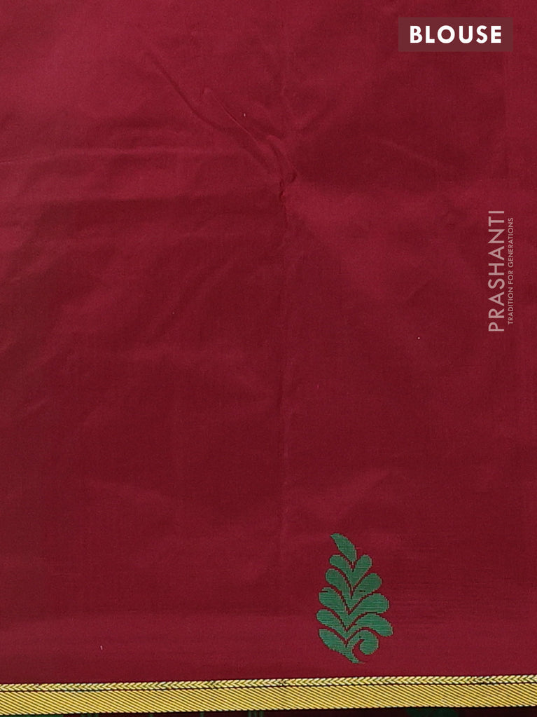 Arani semi silk saree green and maroon with thread woven buttas and piping border
