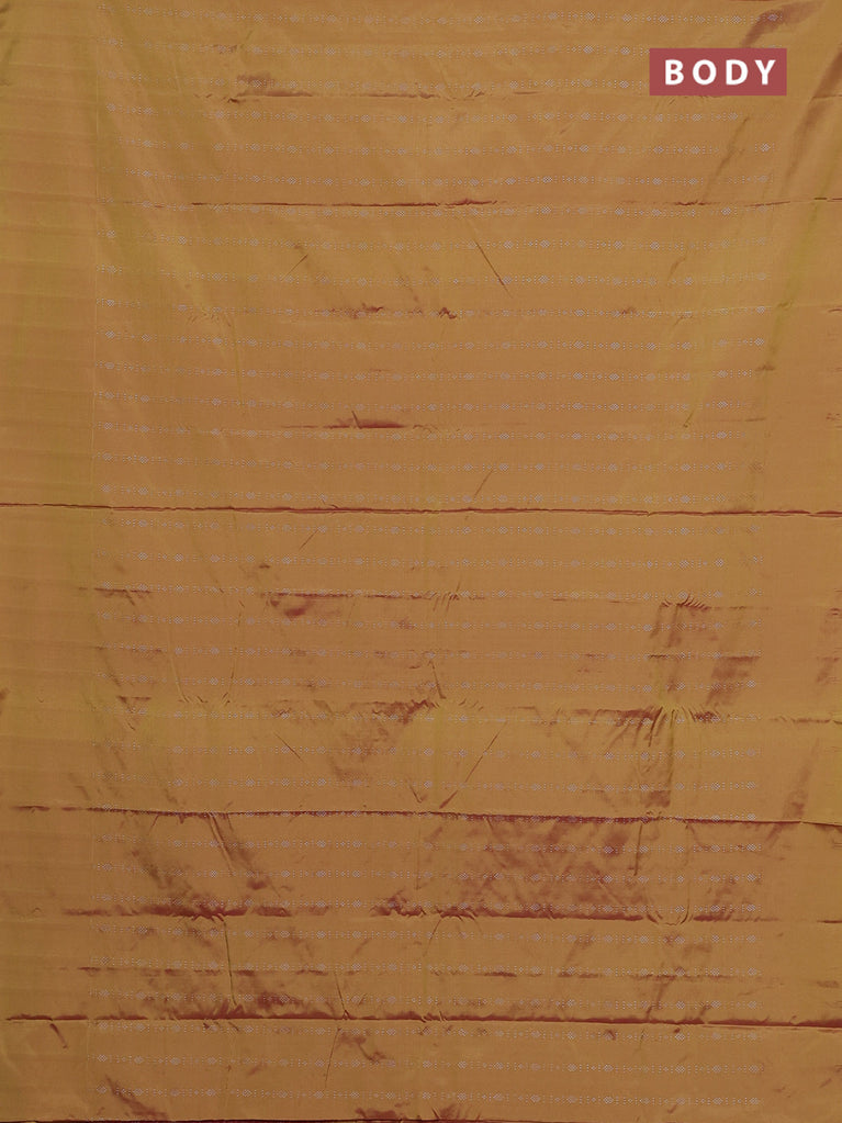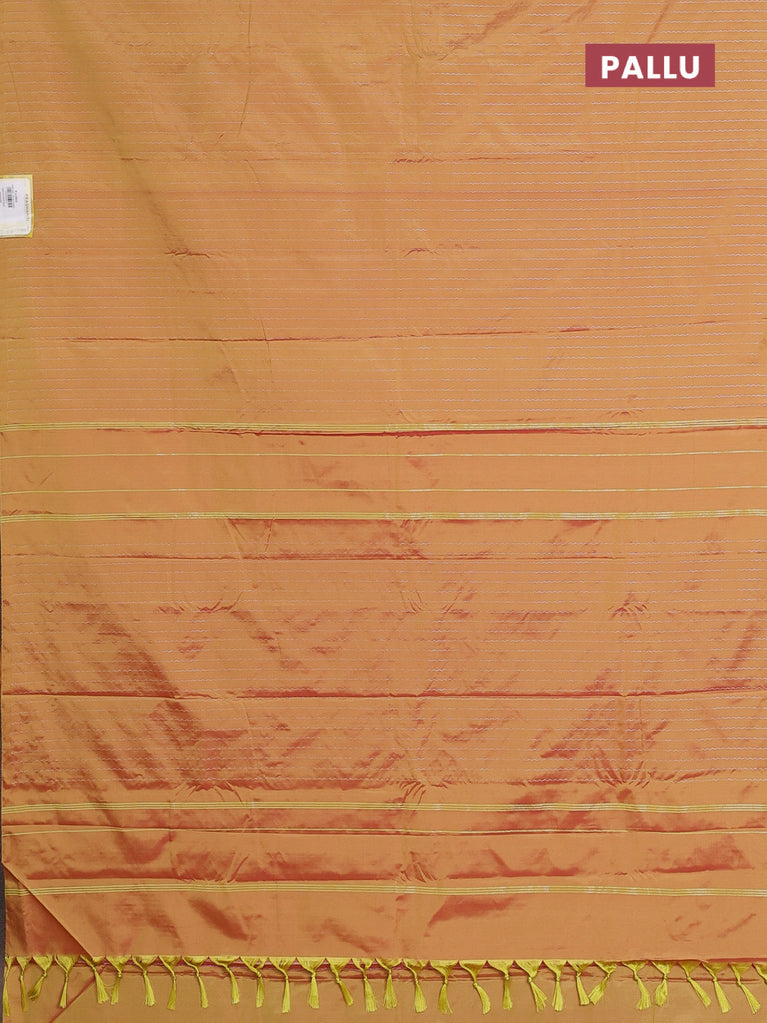 Arani semi silk saree dual shade of yellowish pink with allover silver zari weaves in borderless style