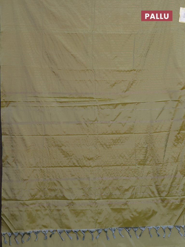 Arani semi silk saree elaichi green with allover copper zari weaves in borderless style