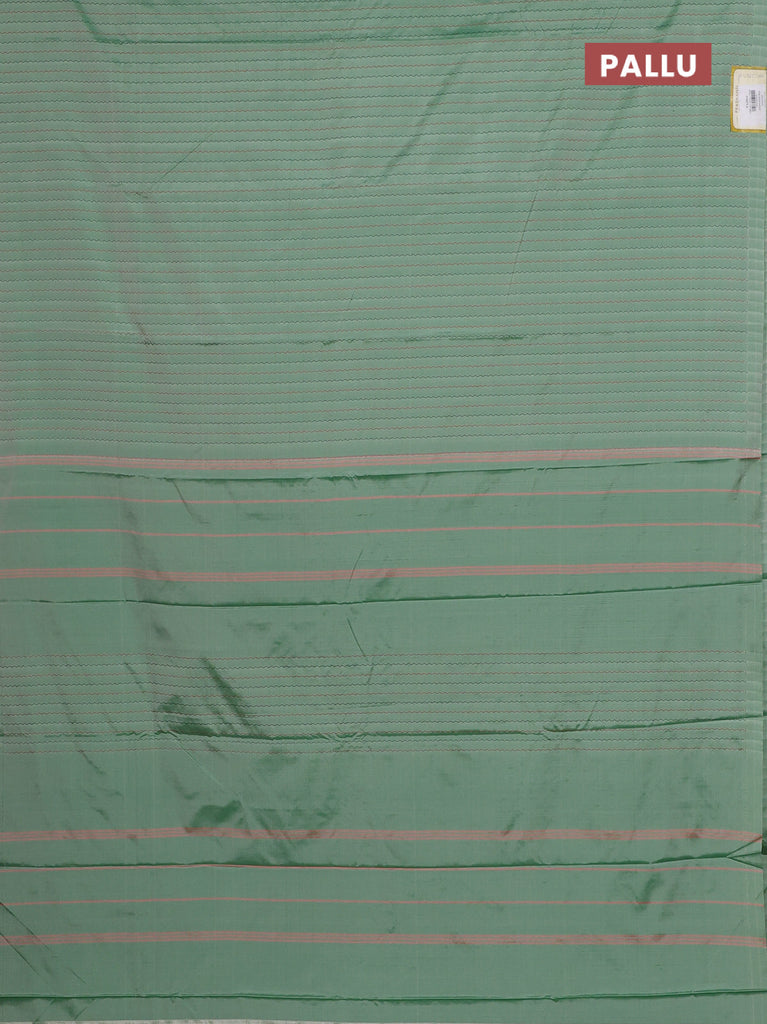 Arani semi silk saree elaichi green with allover silver zari weaves in borderless style