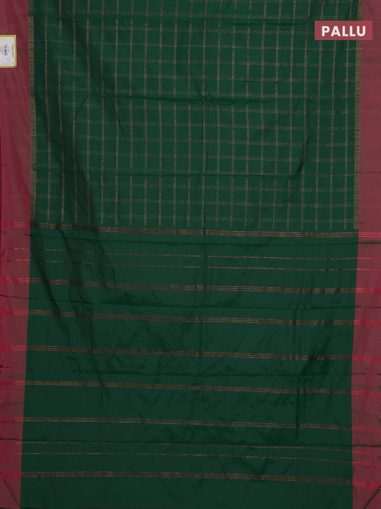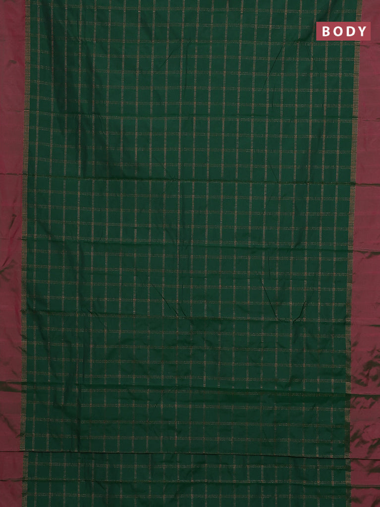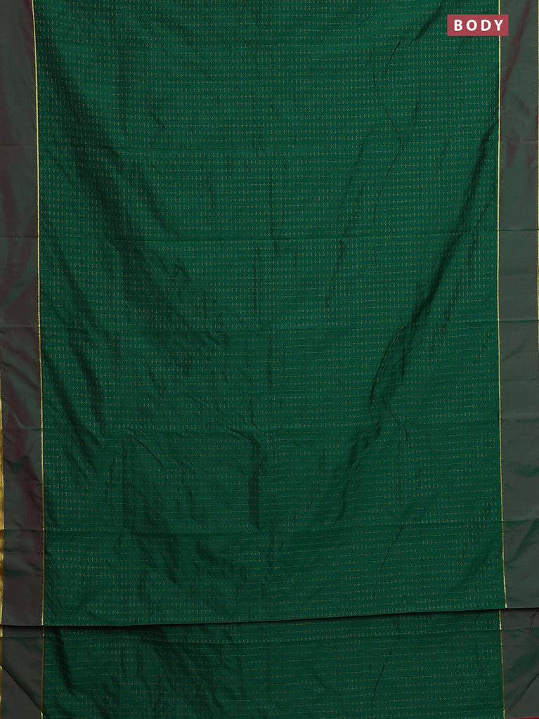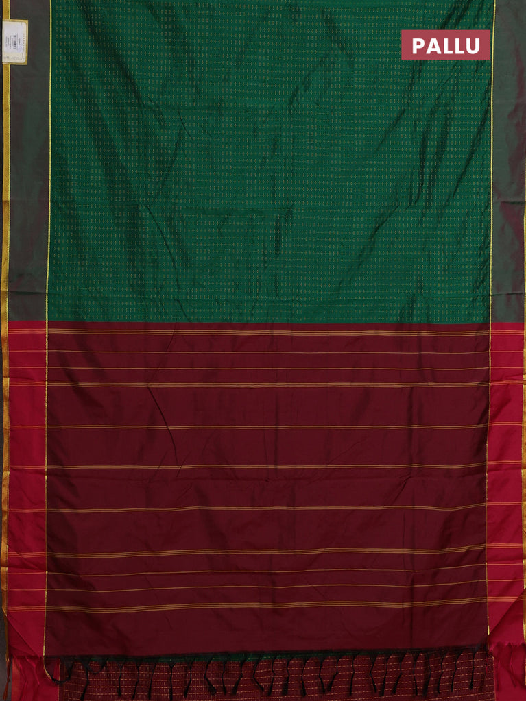 Arani semi silk saree green and maroon with allover thread weaves and rettapet zari woven border`