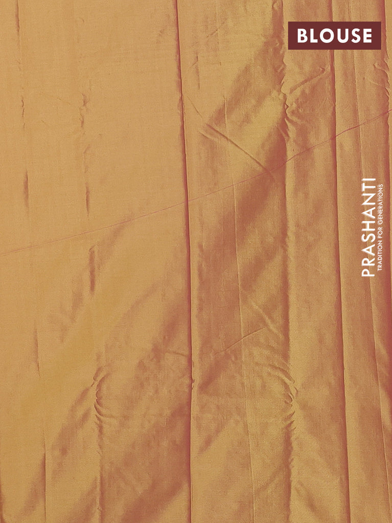 Arani semi silk saree greeen with copper zari woven buttas in borderless style