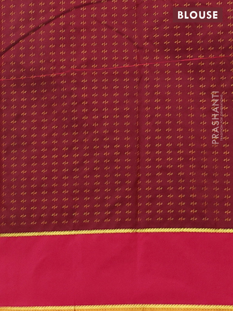 Arani semi silk saree green and magenta pink with allover copper zari weaves and zari checked border