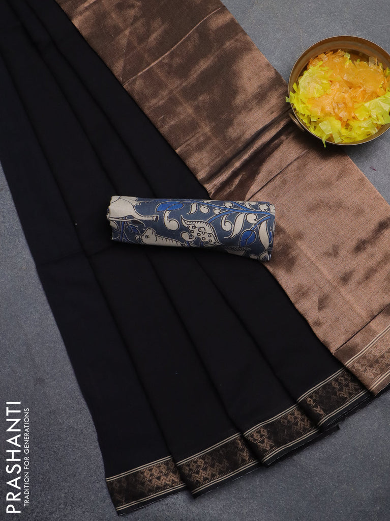 Bengal soft cotton saree black and blue with plain body and zari woven border