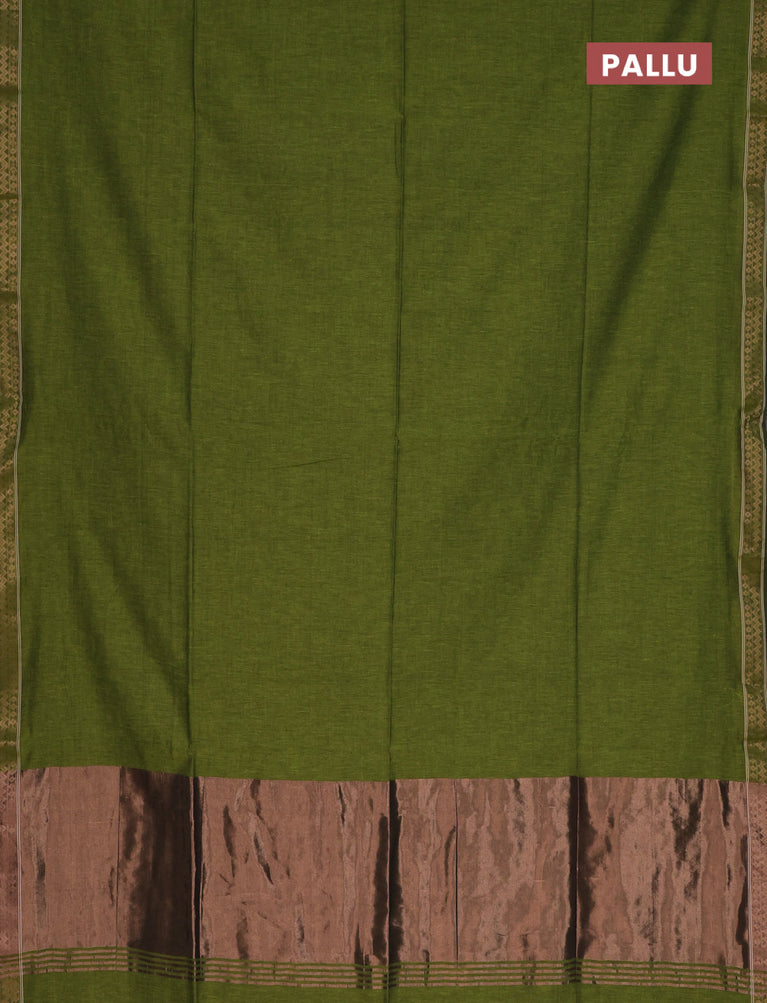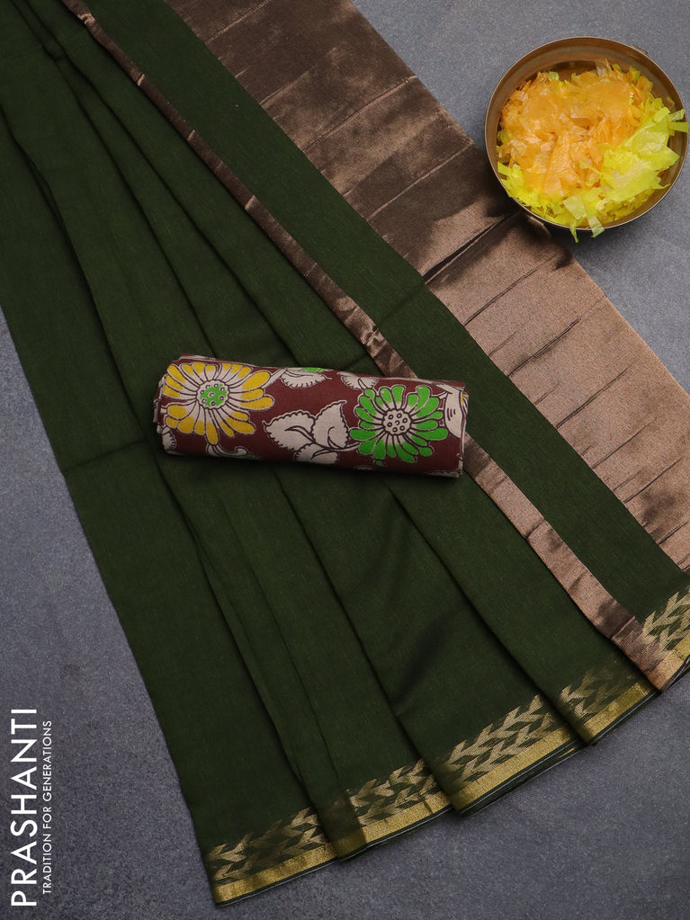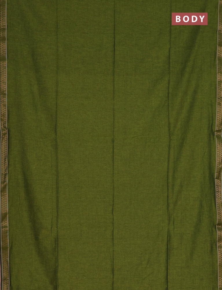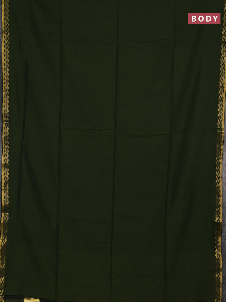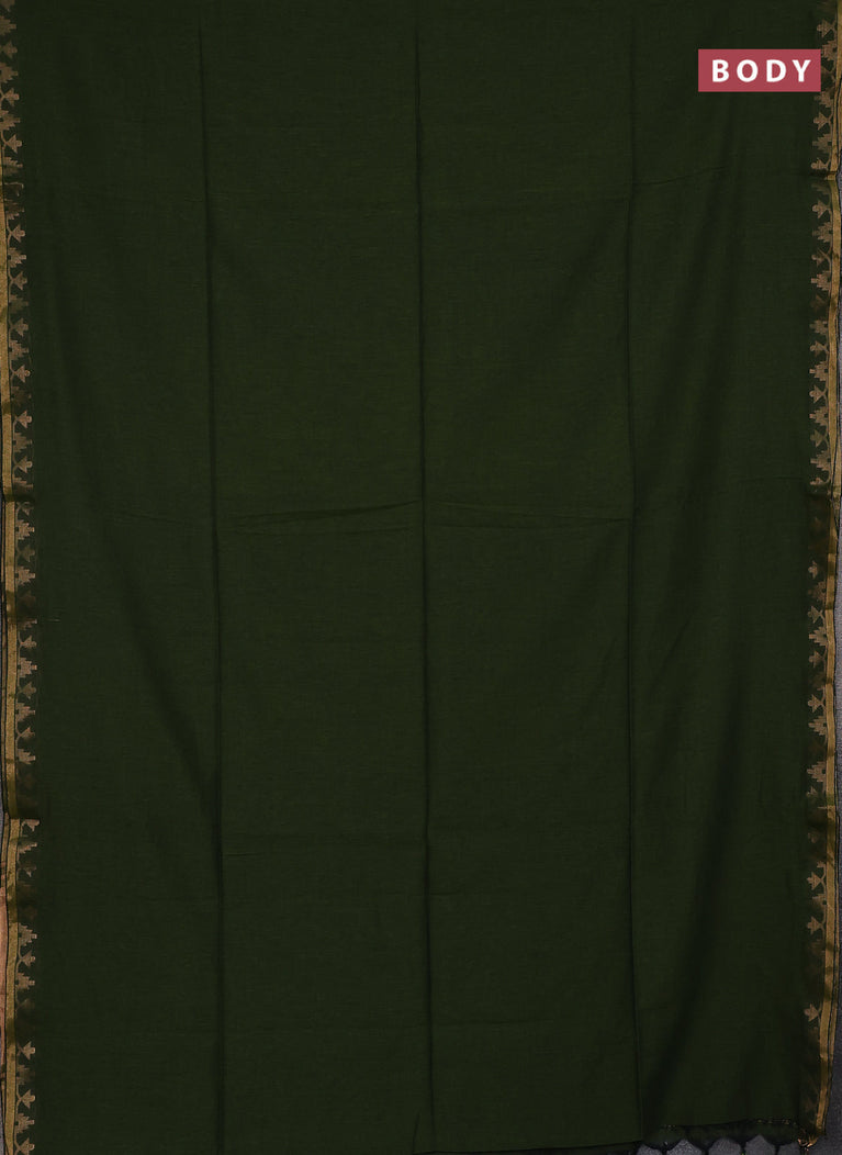 Bengal soft cotton saree sap green with plain body and zari woven border