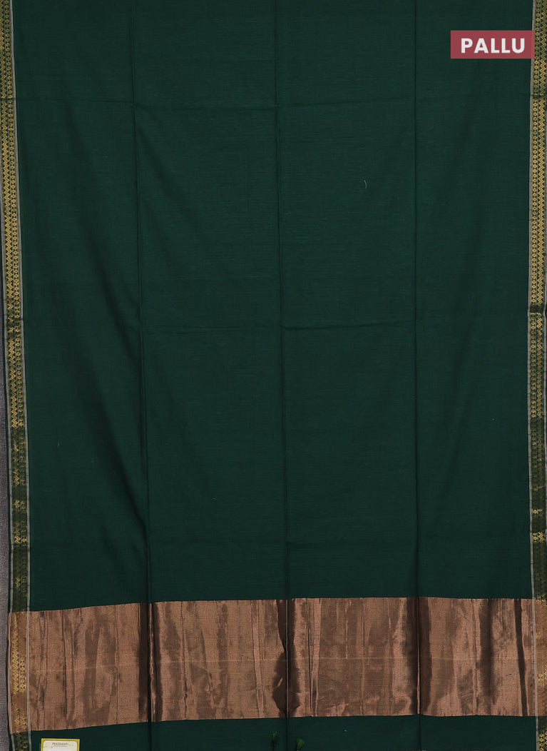 Bengal soft cotton saree green with plain body and zari woven piping border