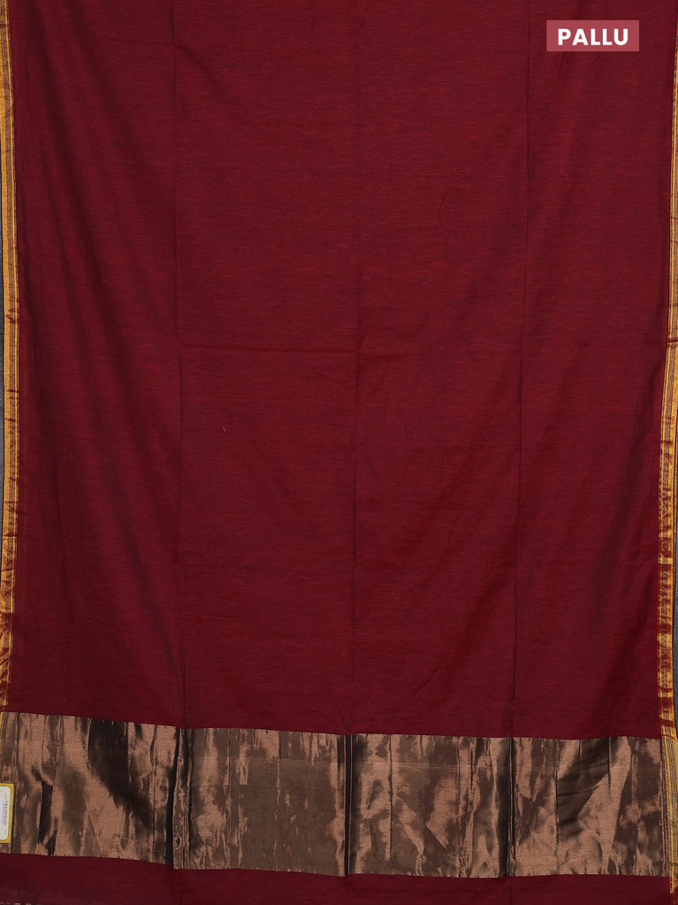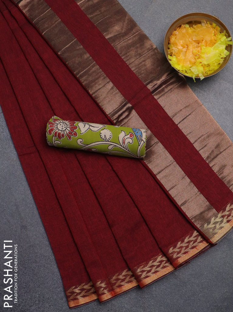 Bengal soft cotton saree maroon with plain body and zari woven border