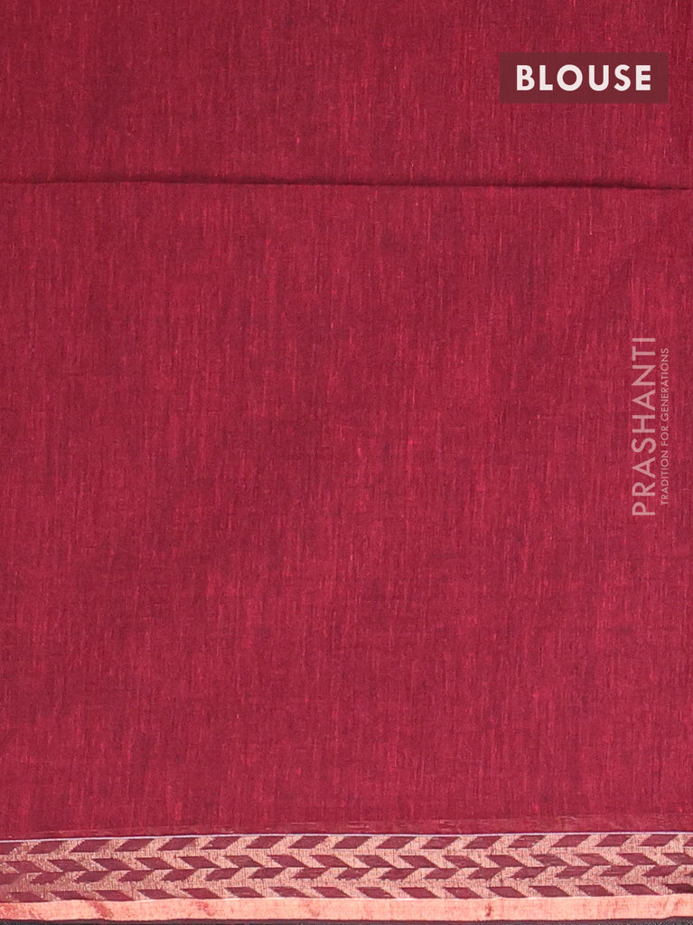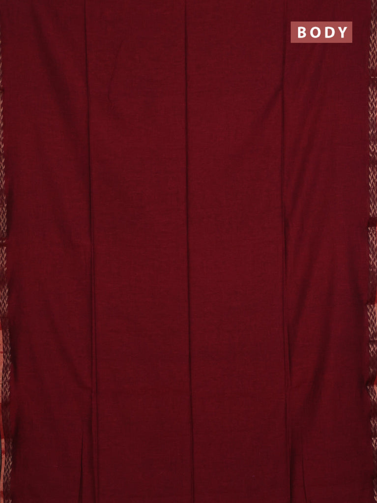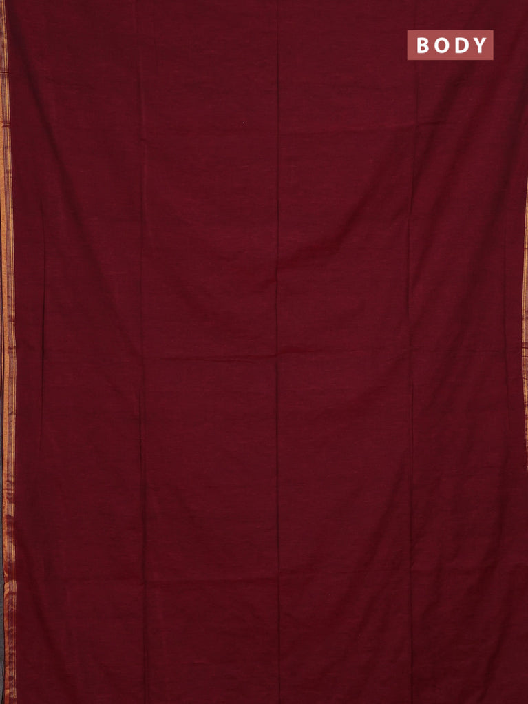 Bengal soft cotton saree maroon with plain body and zari woven piping border