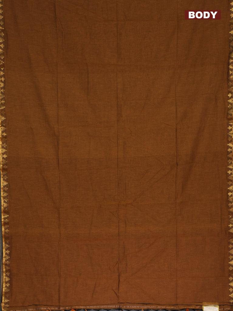 Bengal soft cotton saree navy blue and brown with plain body and zari woven border