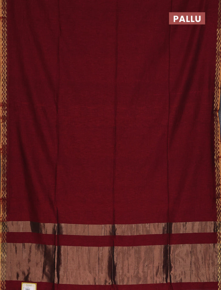 Bengal soft cotton saree maroon and blue with plain body and zari woven border