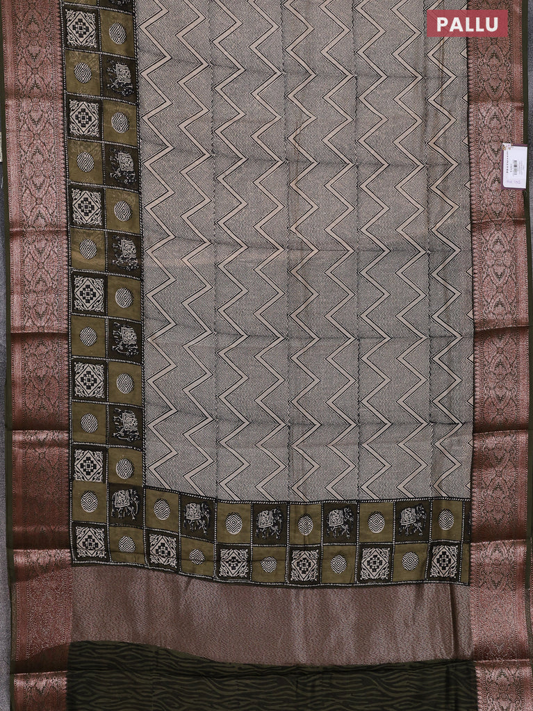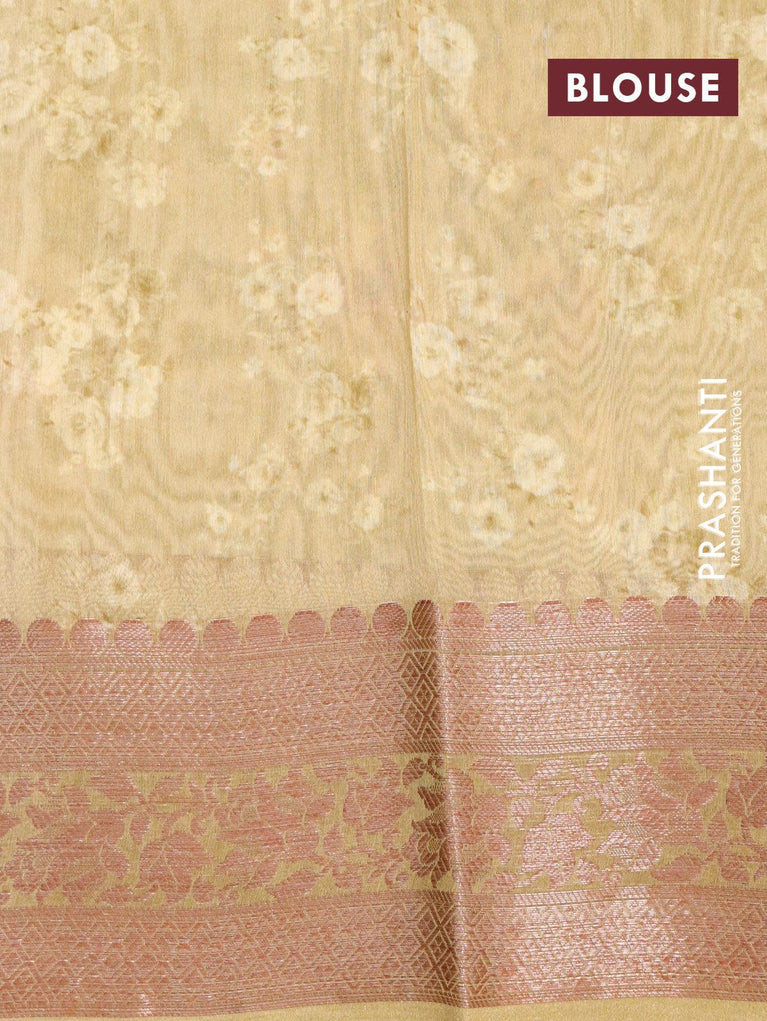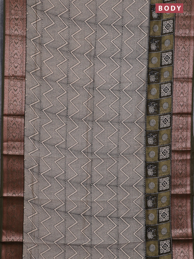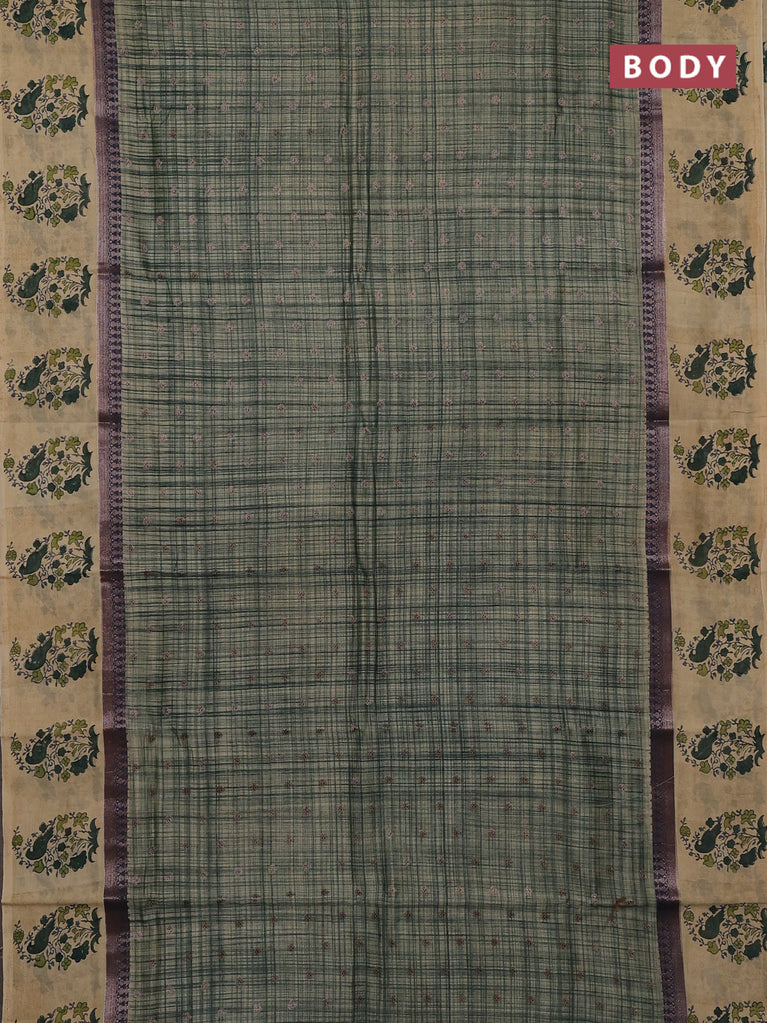 Chanderi silk cotton saree beige and sap green with allover prints and banarsi style border