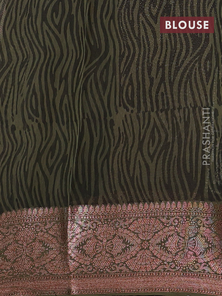 Chanderi silk cotton saree dark mustard and brown with allover zig zag prints and banarasi style border