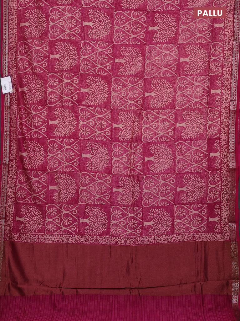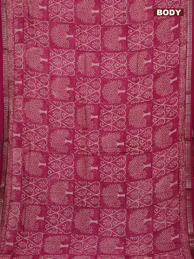 Chanderi silk cotton saree magenta pink with allover prints and banarasi style border