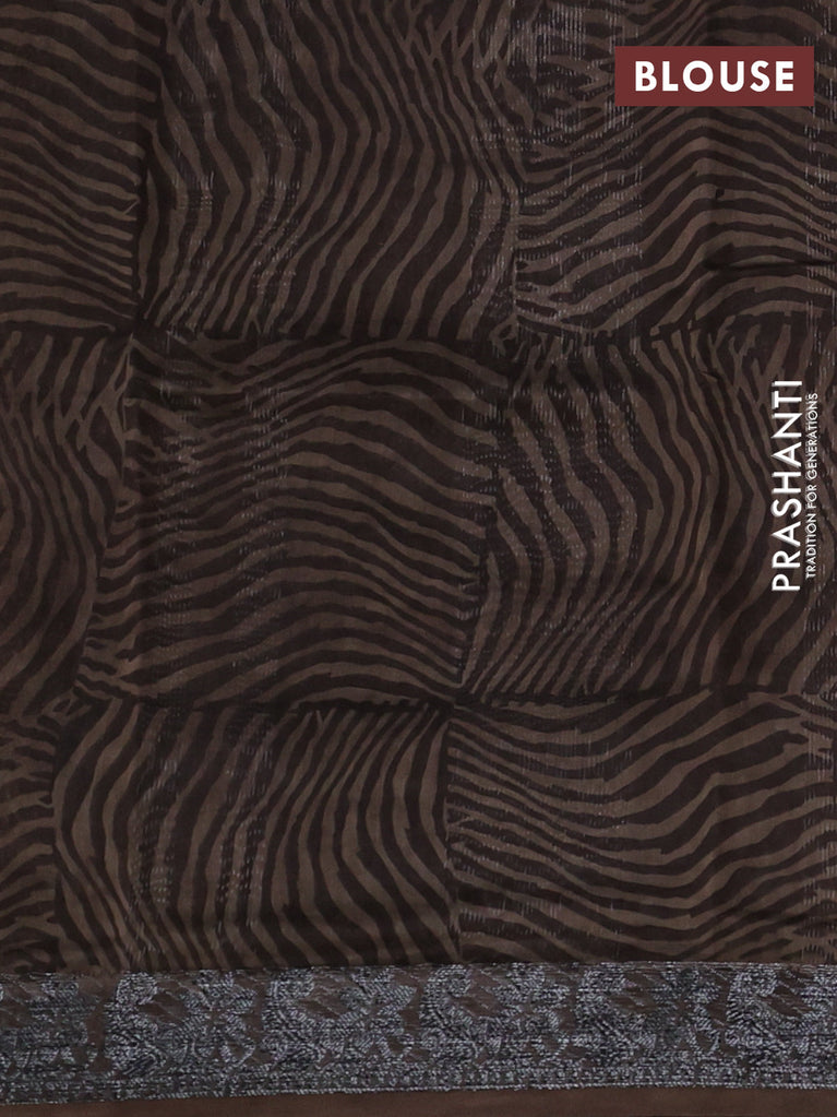 Chanderi silk cotton saree brown with allover prints & mirror work and woven border