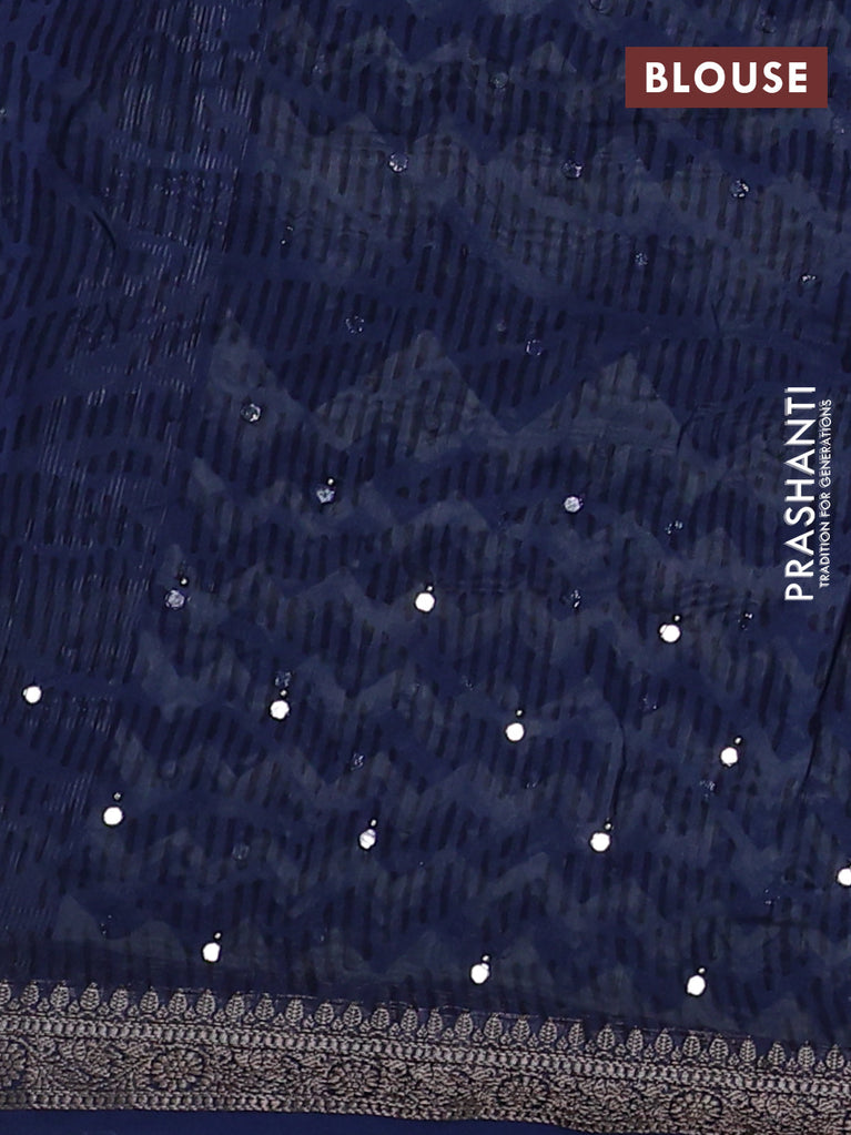 Chanderi silk cotton saree dark blue and beige with allover zig zag prints & mirror work and woven border