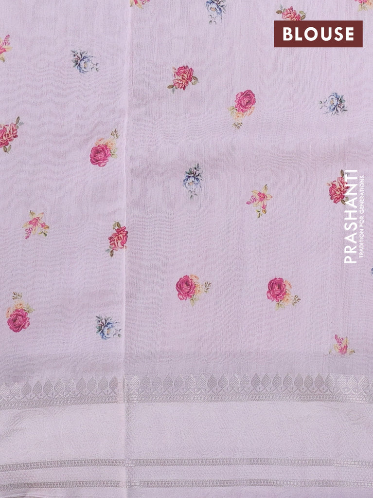 Chanderi silk cotton saree baby pink with allover floral digital prints and thread & zari woven border