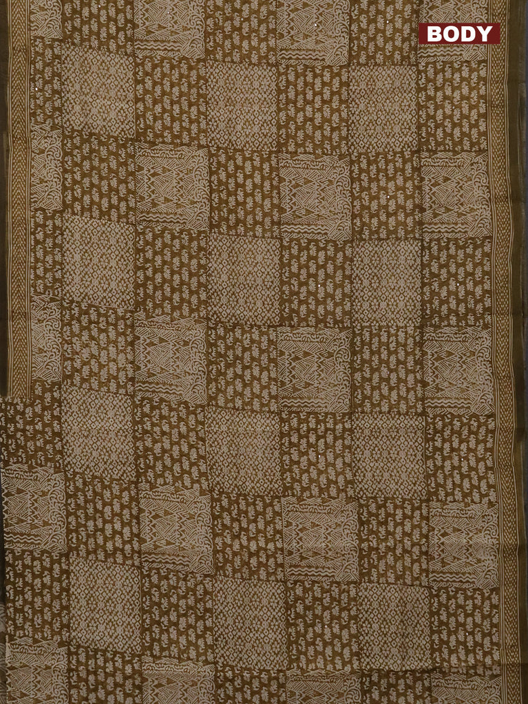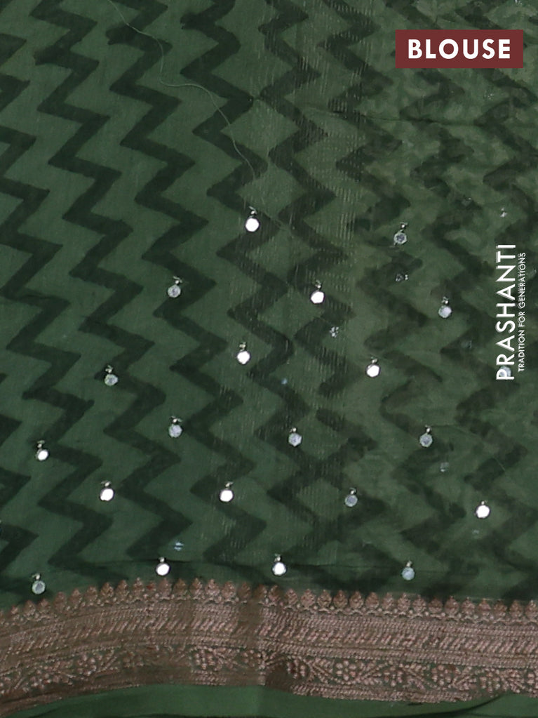 Chanderi silk cotton saree mehendi green and beige with allover prints & mirror work and printed border
