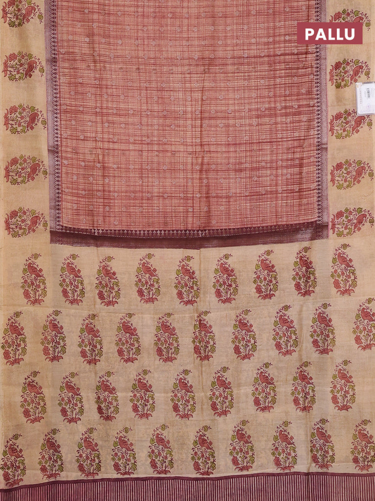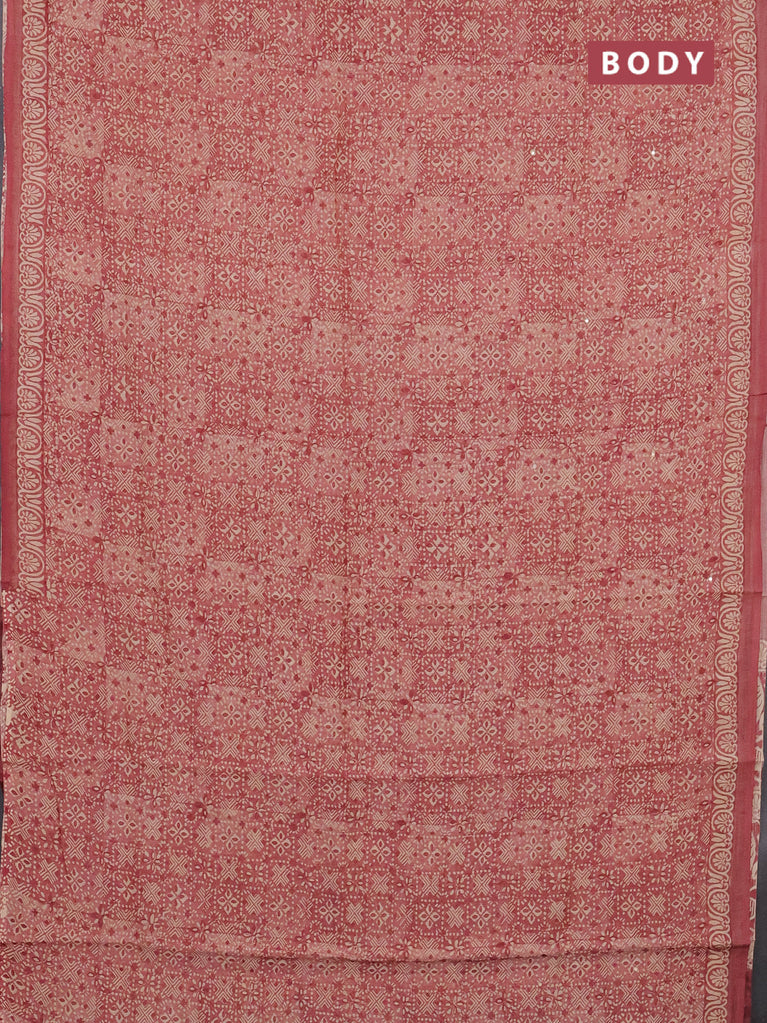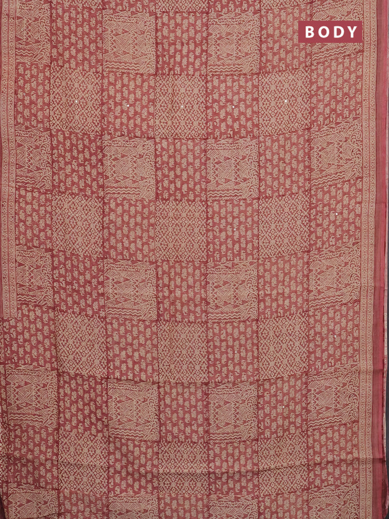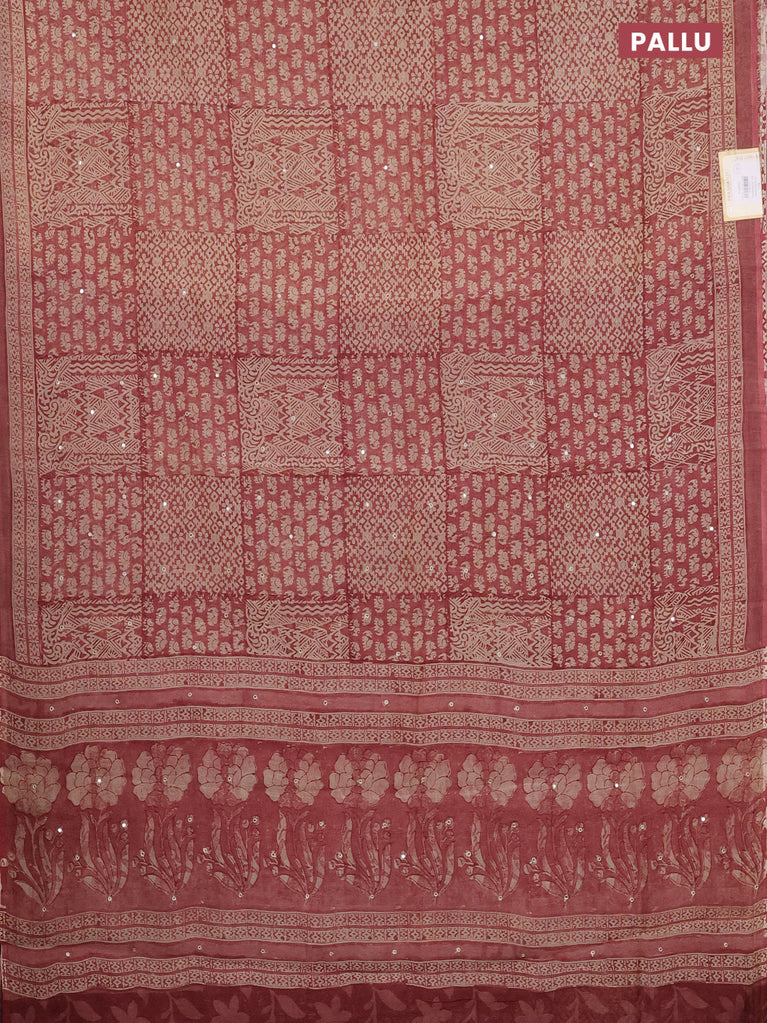 Chanderi silk cotton saree pastel maroon and beige with allover prints & mirror work and printed border