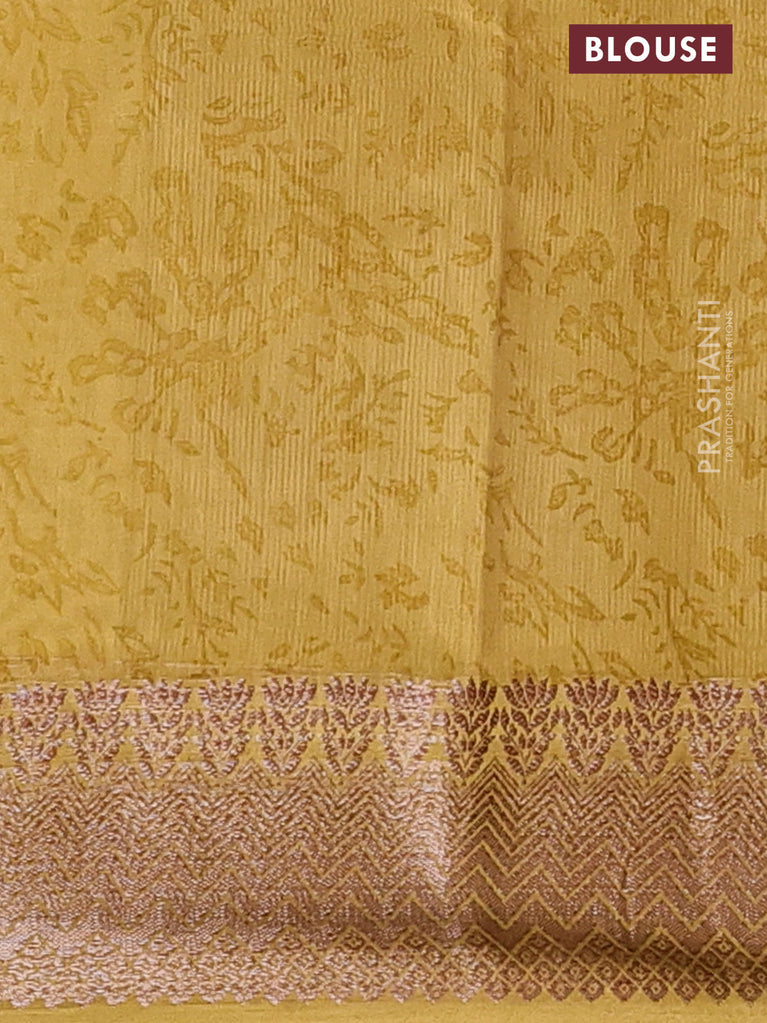 Chanderi silk cotton saree mustard shade with allover floral prints and banarasi style border