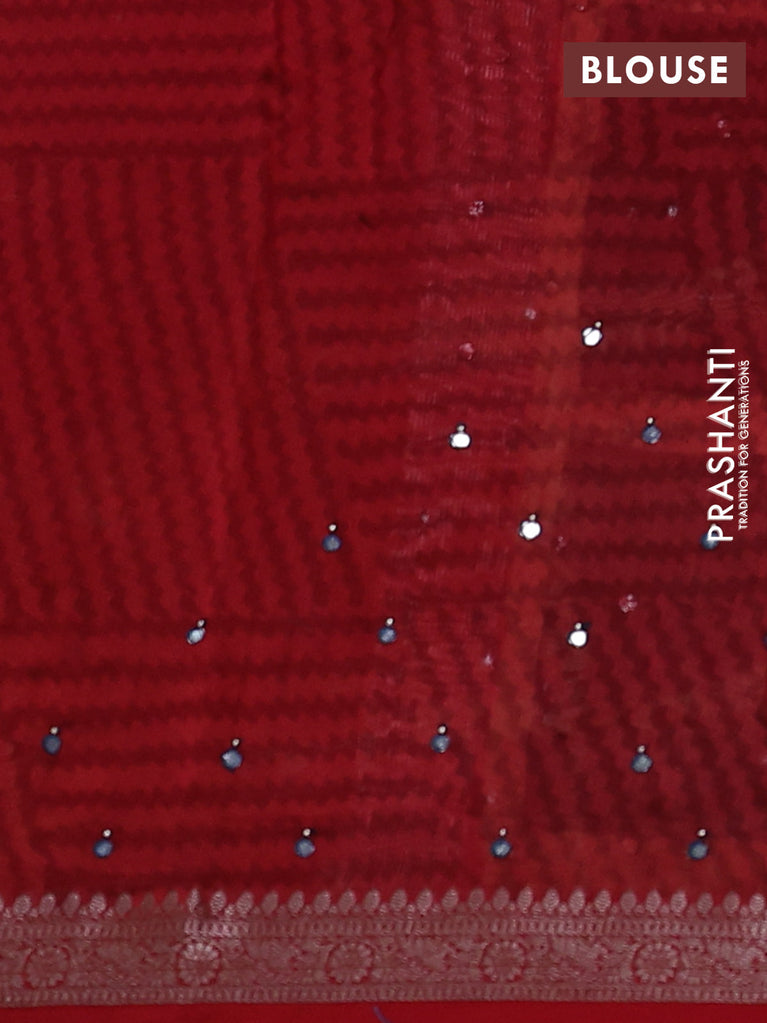 Chanderi silk cotton saree red with allover geometric prints & mirror work and woven border