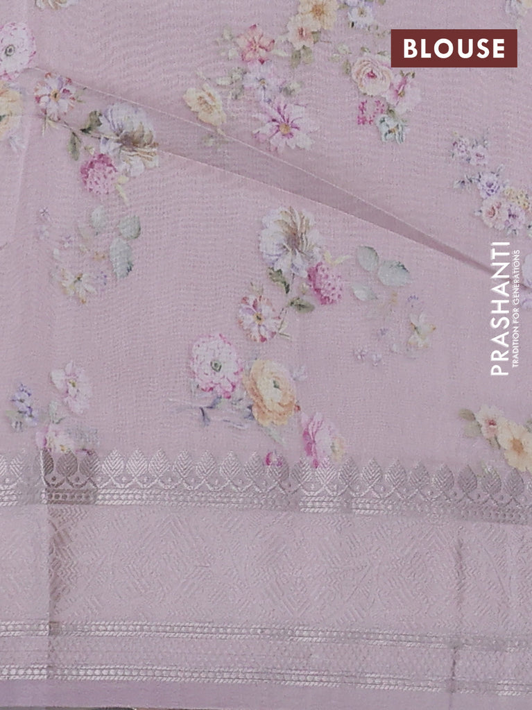 Chanderi silk cotton saree pastel pink with allover floral digital prints and thread & zari woven border