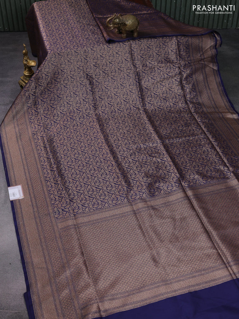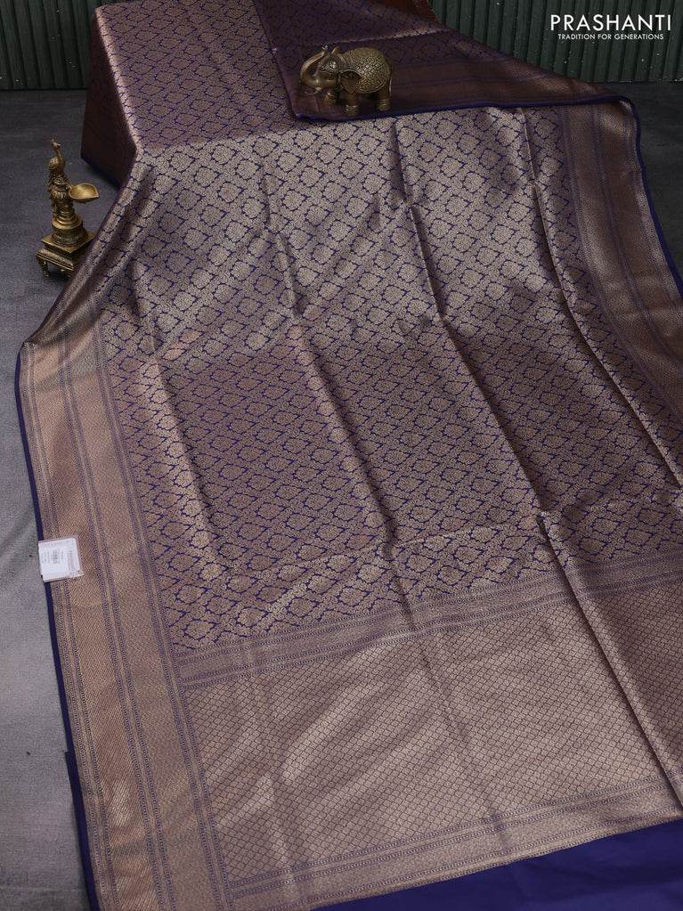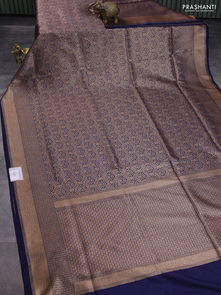 Banarasi semi katan saree navy blue with allover thread & zari woven brocade pattern and woven border