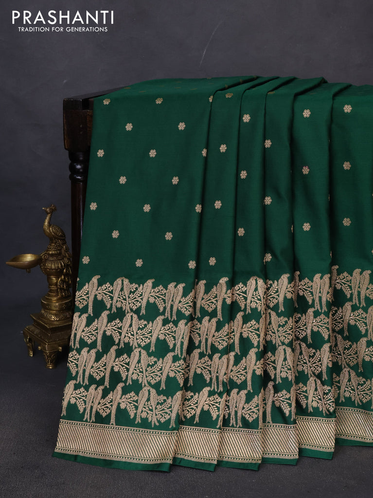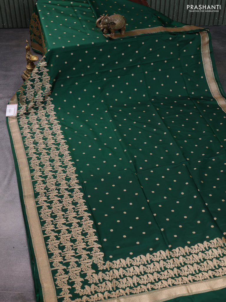 Banarasi semi katan saree green with zari woven buttas and zari woven border
