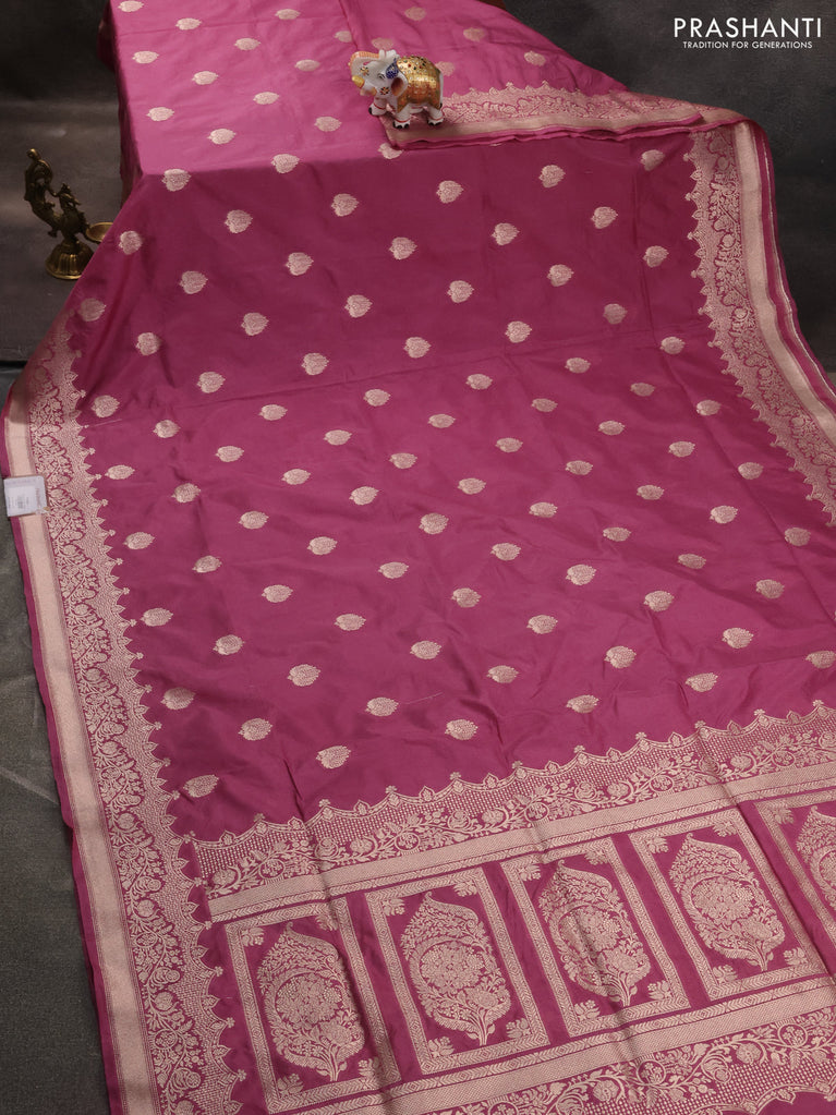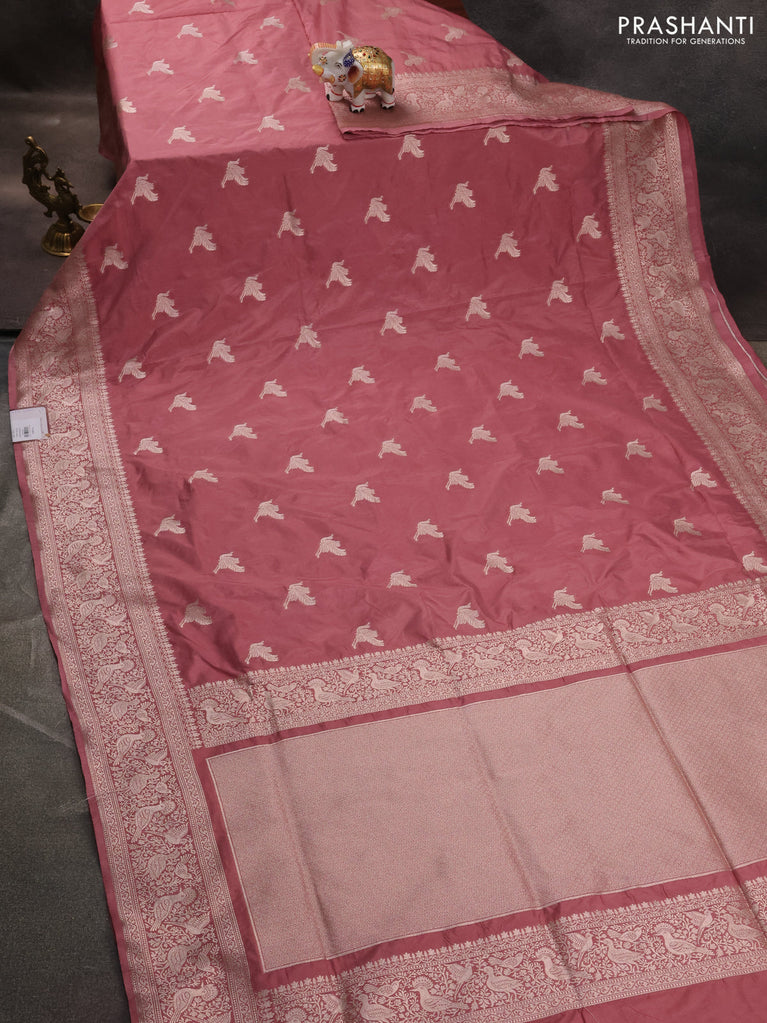 Banarasi semi katan saree mauve pink with zari woven buttas and zari woven border