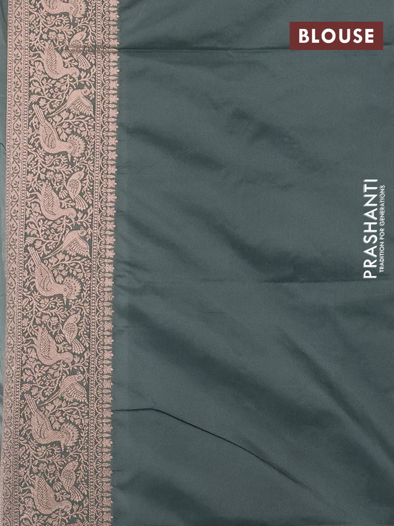 Banarasi semi katan saree greyish green with zari woven buttas and zari woven border
