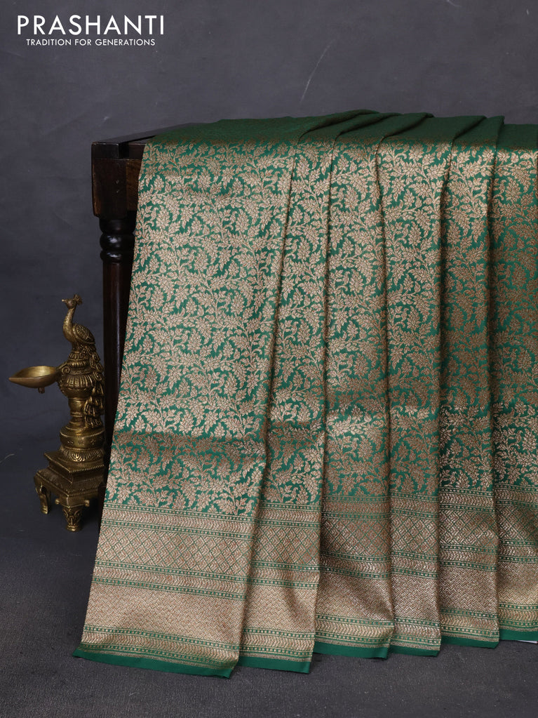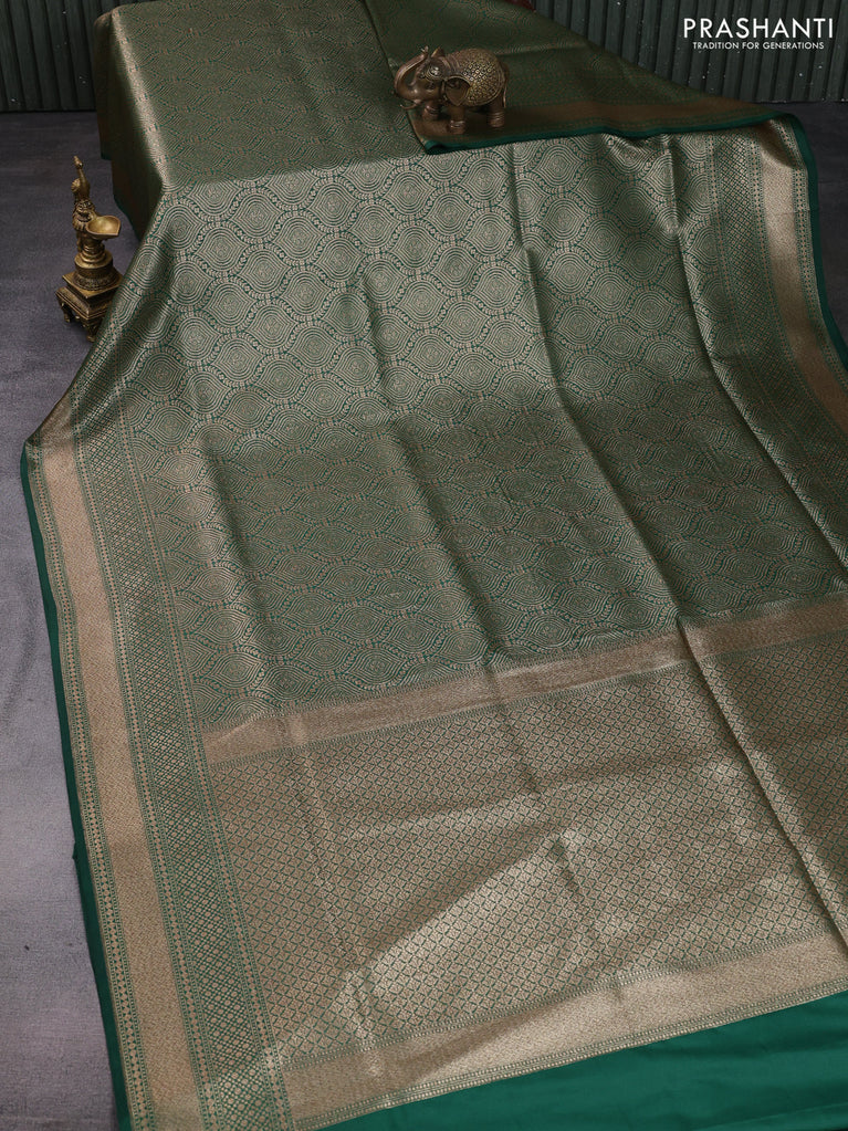 Banarasi semi katan saree green with allover thread & zari woven brocade weaves and woven border