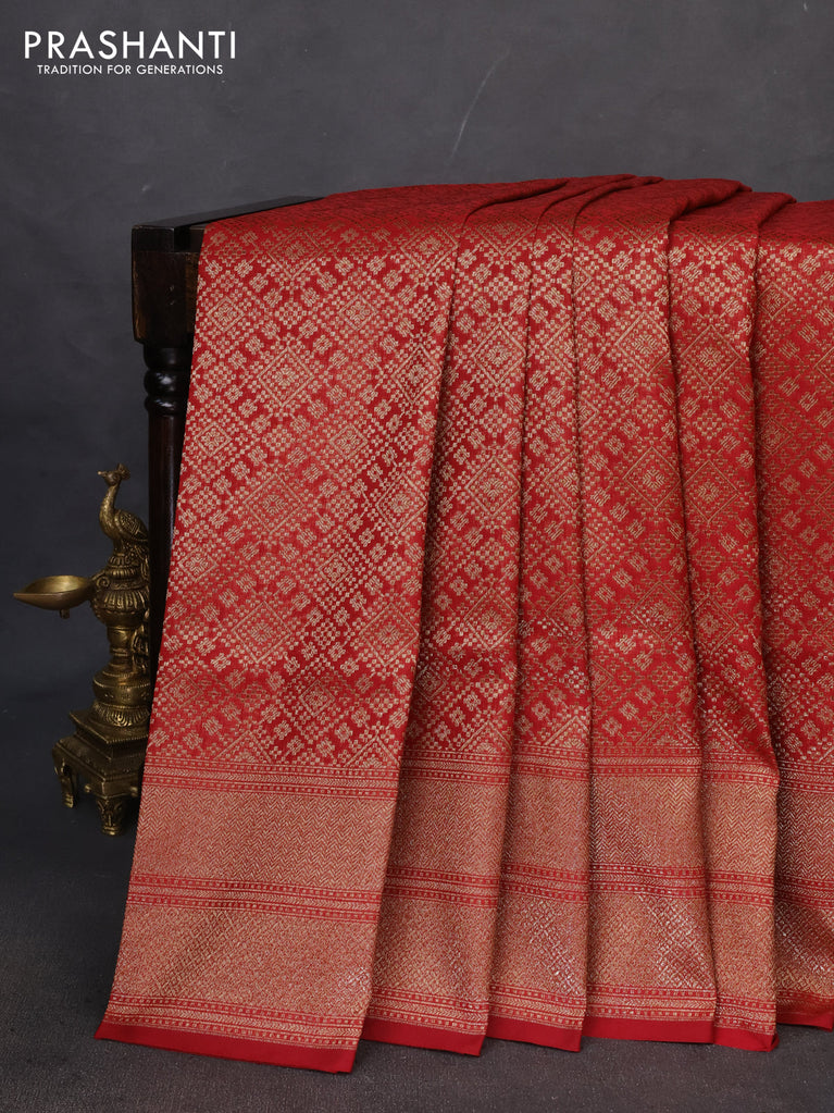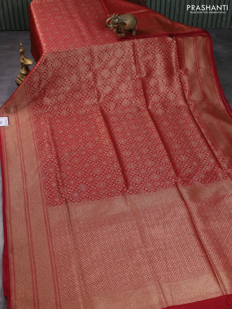 Banarasi semi katan saree maroon with allover thread & zari woven brocade pattern and woven border