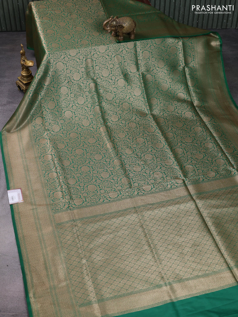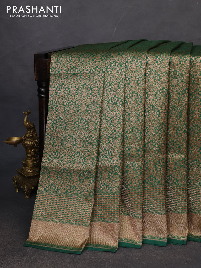 Banarasi semi katan saree green with allover thread & zari brocade weaves and woven border