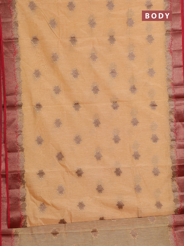 Banarasi semi matka saree sandal and red with thread & zari woven buttas and banarastyle border