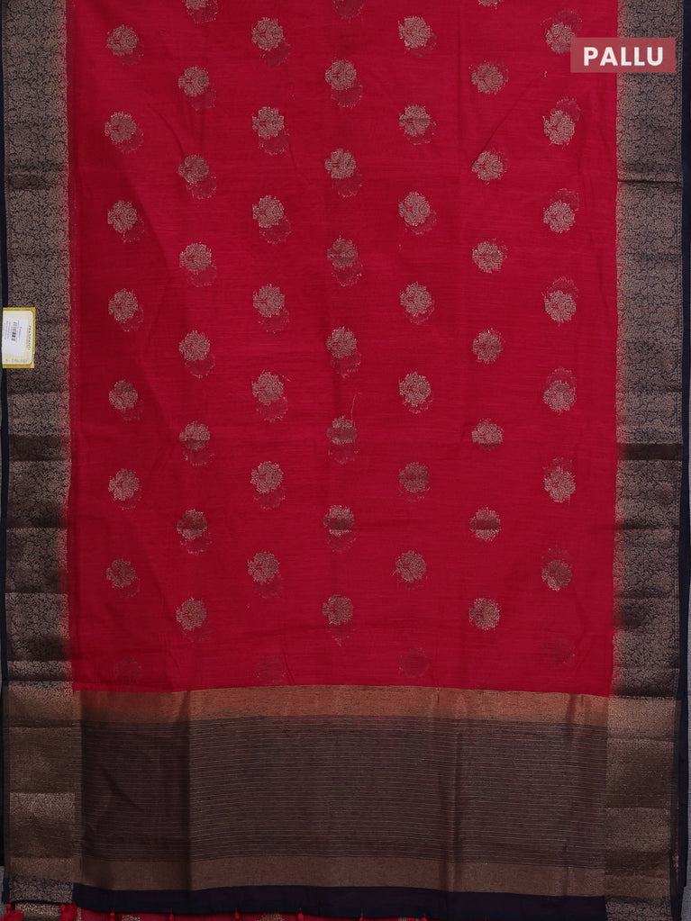 Banarasi semi matka saree pink and navy blue with thread & zari woven buttas and banarasi style border