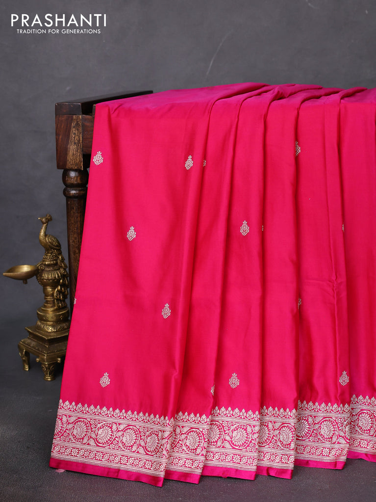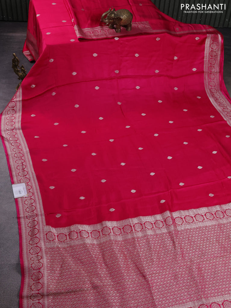 Banarasi semi mushru silk saree pink with thread & zari woven buttas and zari woven border