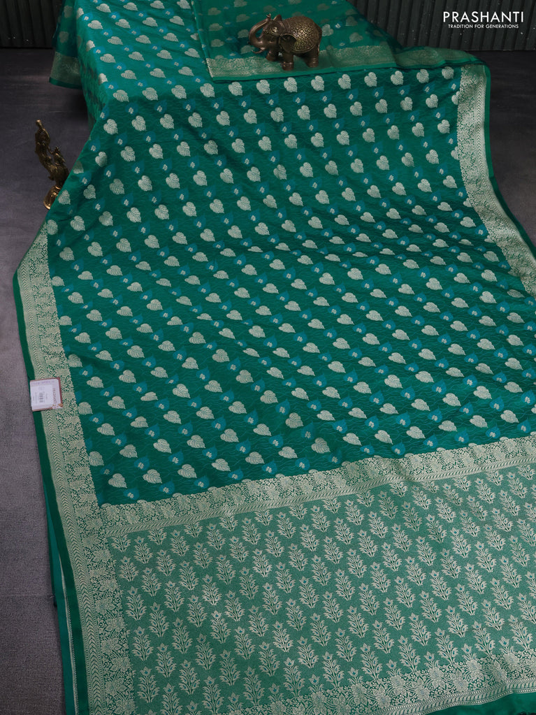 Banarasi semi mushru silk saree teal green with allover thread & zari weaves and zari woven border