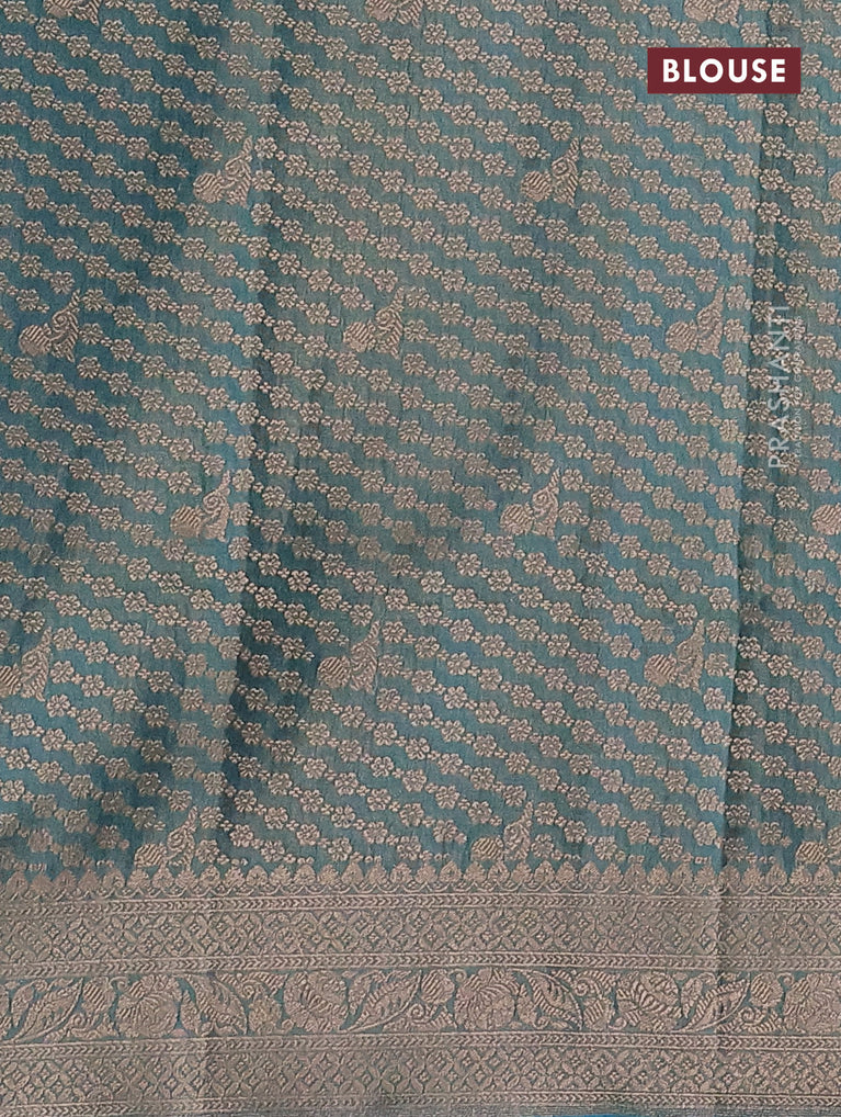 Banarasi tissue silk saree teal blue with allover zari woven brocade weaves and zari woven border