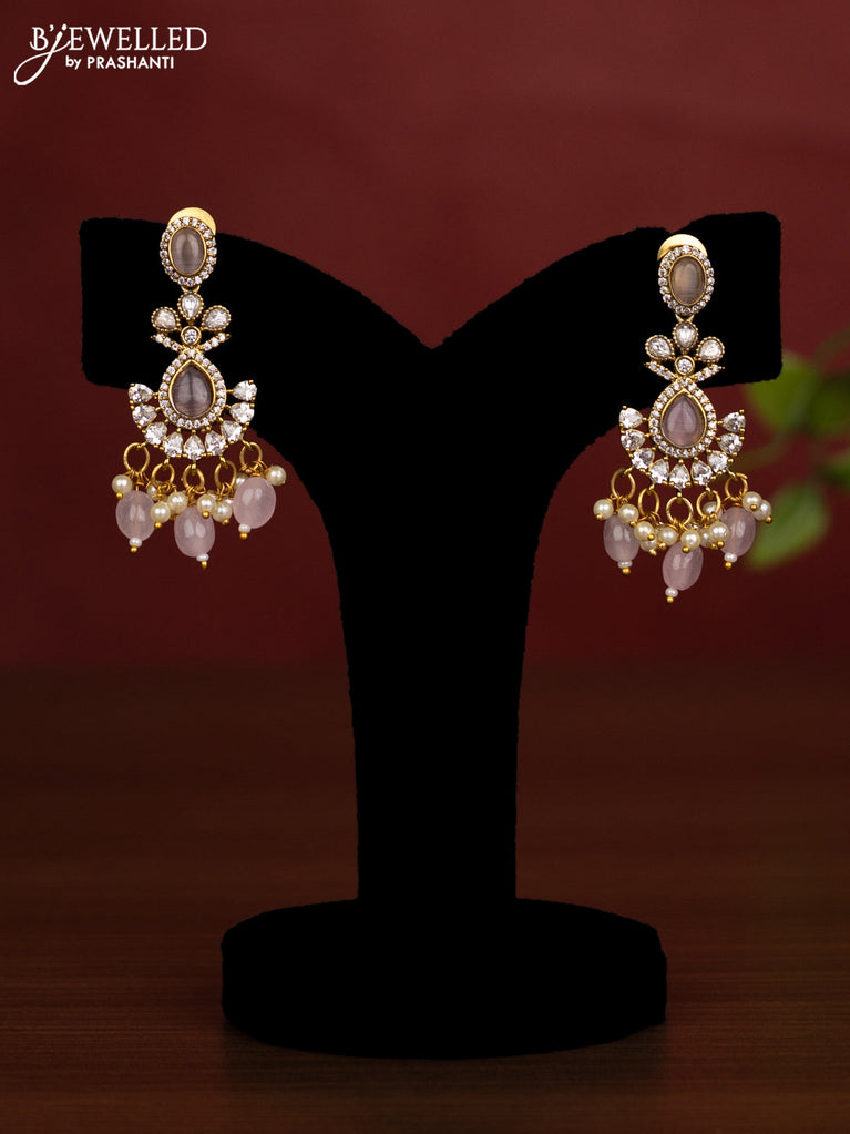 Beaded triple layer baby pink necklace with cz stones and pearl & beads hanging in victorian finish