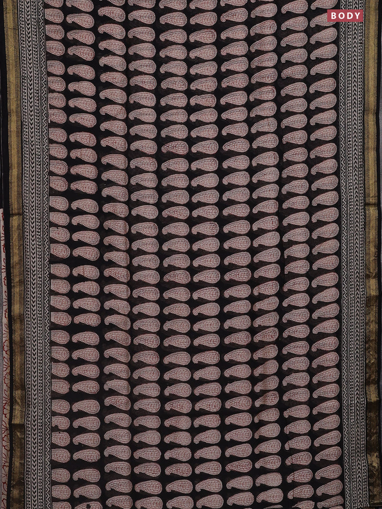 Chanderi bagru saree black and cream with allover paisley butta prints and mageshwari border