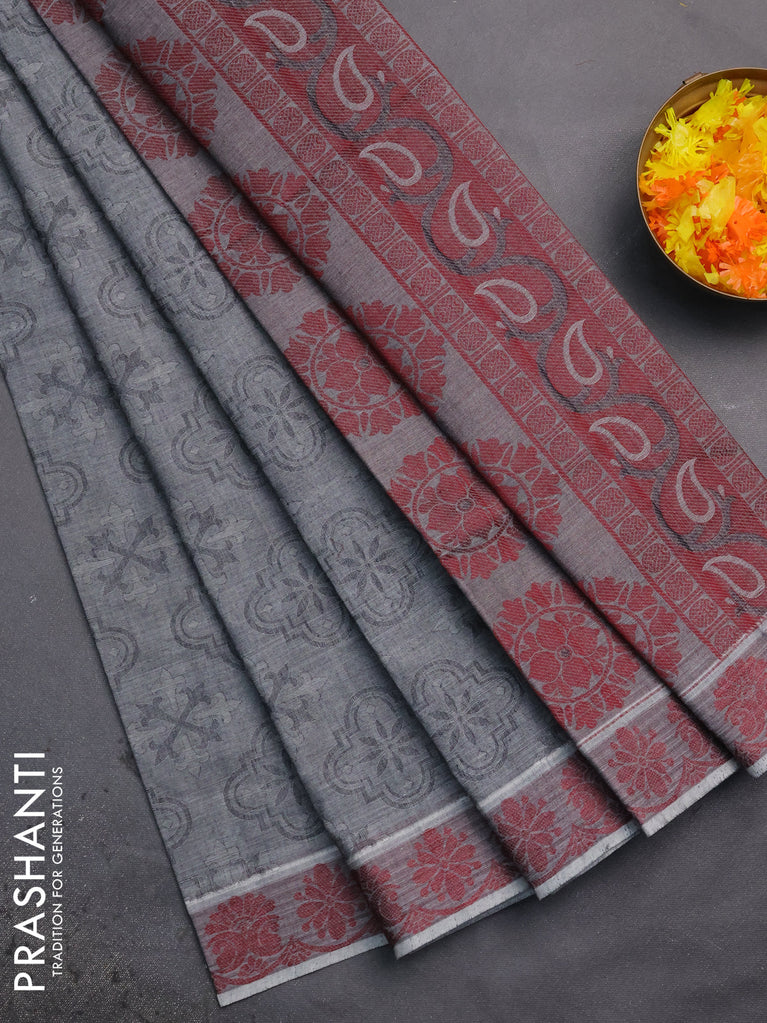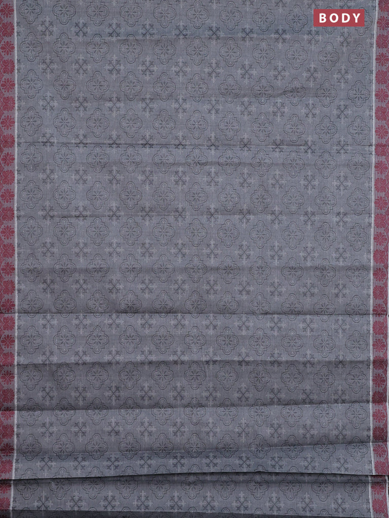 Coimbatore cotton saree grey and maroon with allover self emboss and thread woven border