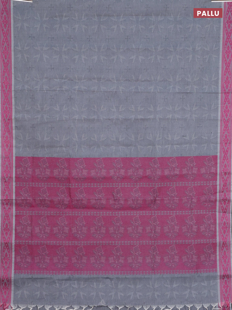 Coimbatore cotton saree grey and pink with allover self emboss and thread woven border