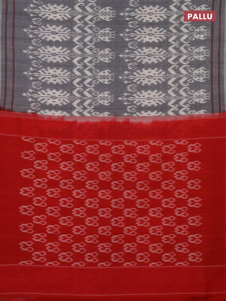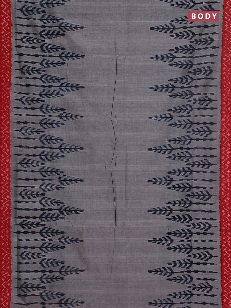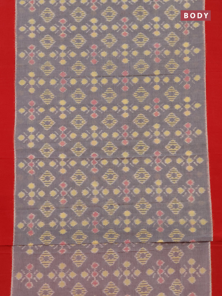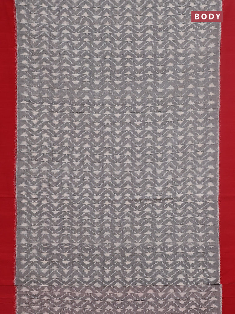 Ikat cotton saree grey and red with allover ikat weaves and simple border