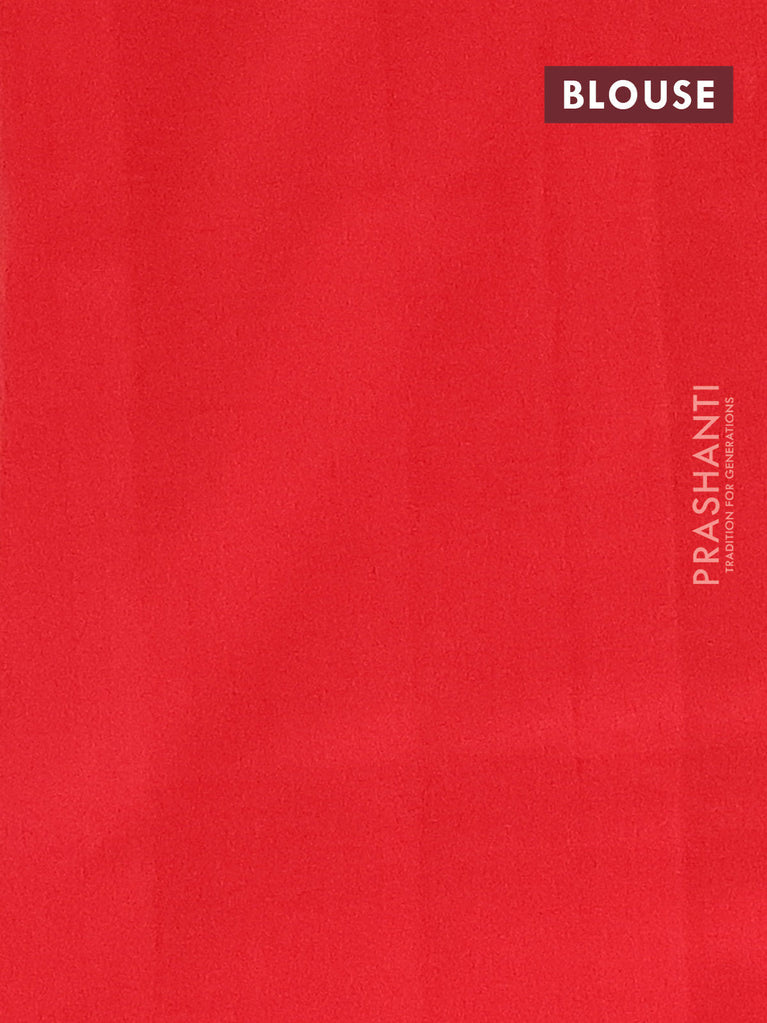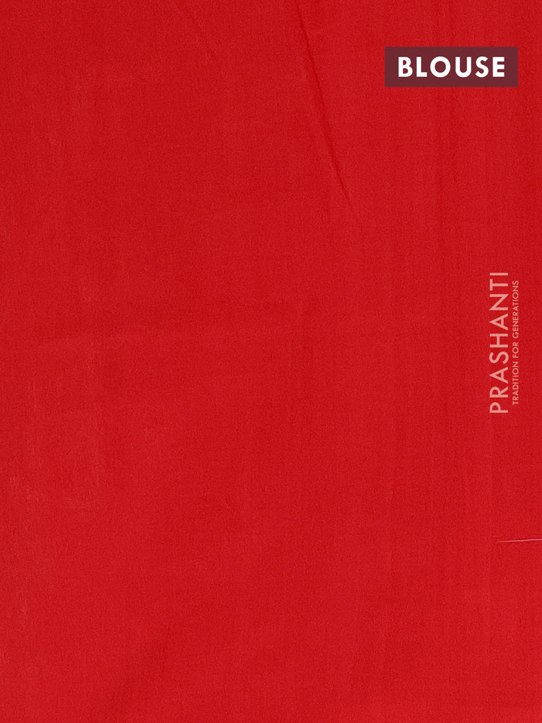 Ikat cotton saree grey and kumkum red with plain body and ikat style border