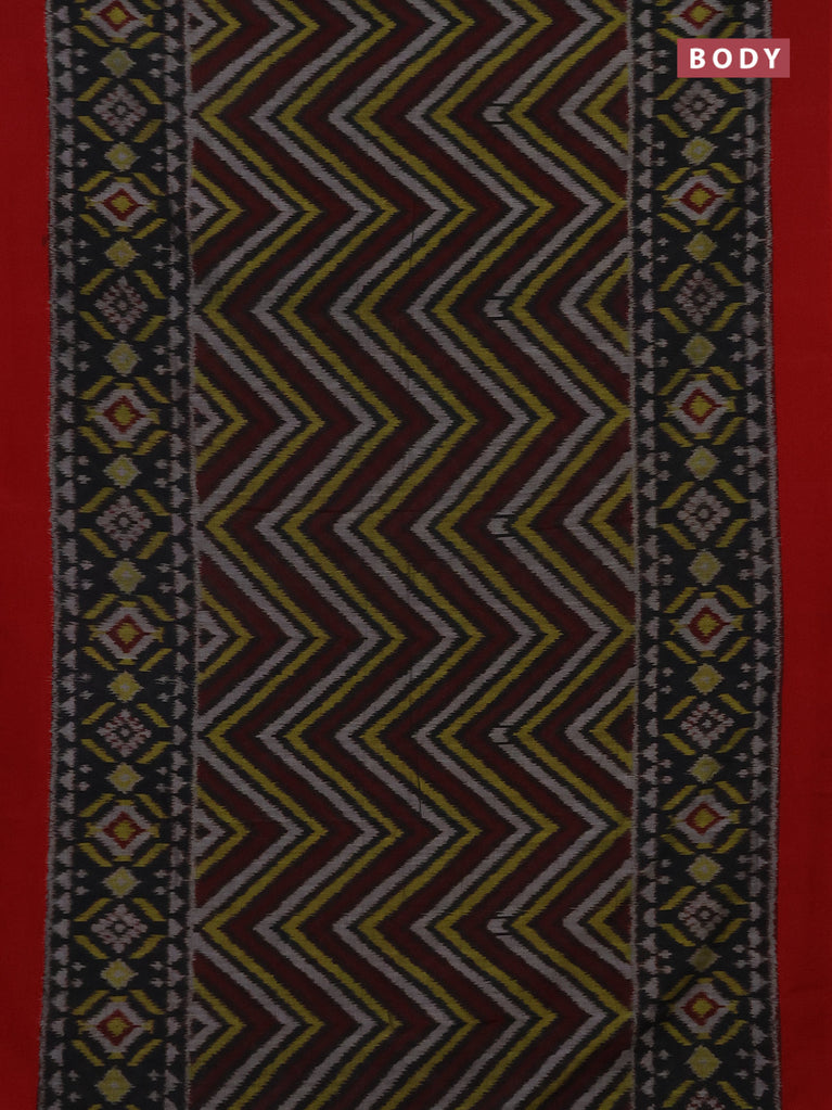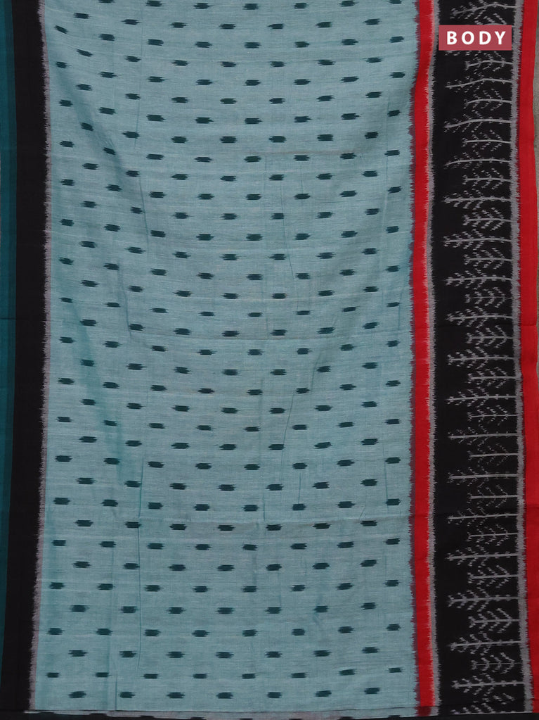 Ikat cotton saree green and black red with allover ikat butta weaves and long ikat style border